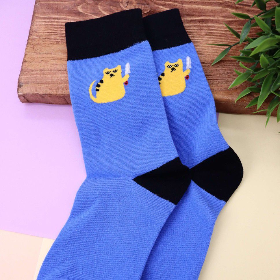 Носки Кот с ножом, голубые (размер 35-45) купить в интернет-магазине «Хочу!» | Доставка по Москве и России