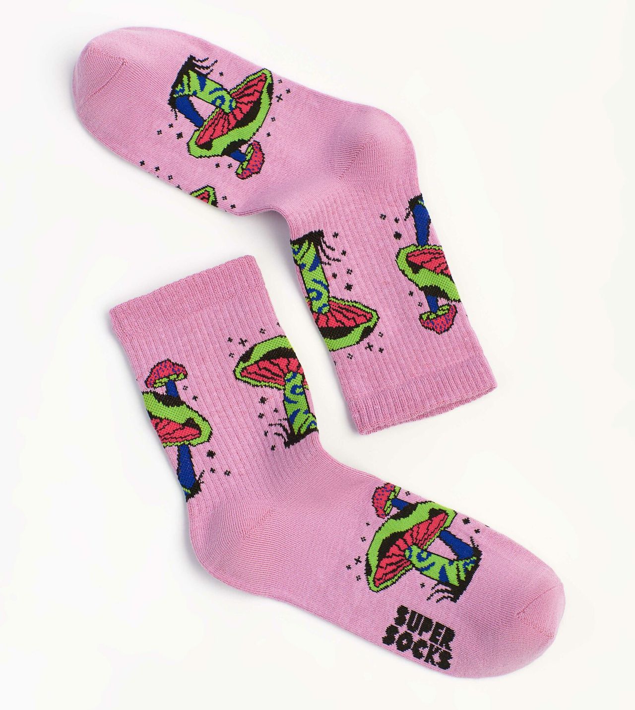 Носки SUPER SOCKS Грибы паттерн сиреневый (размер 35-40)