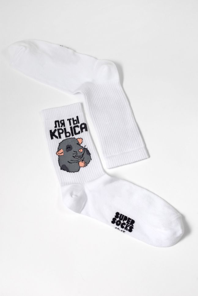 Носки SUPER SOCKS Ля ты крыса, белые (размер 40-45)