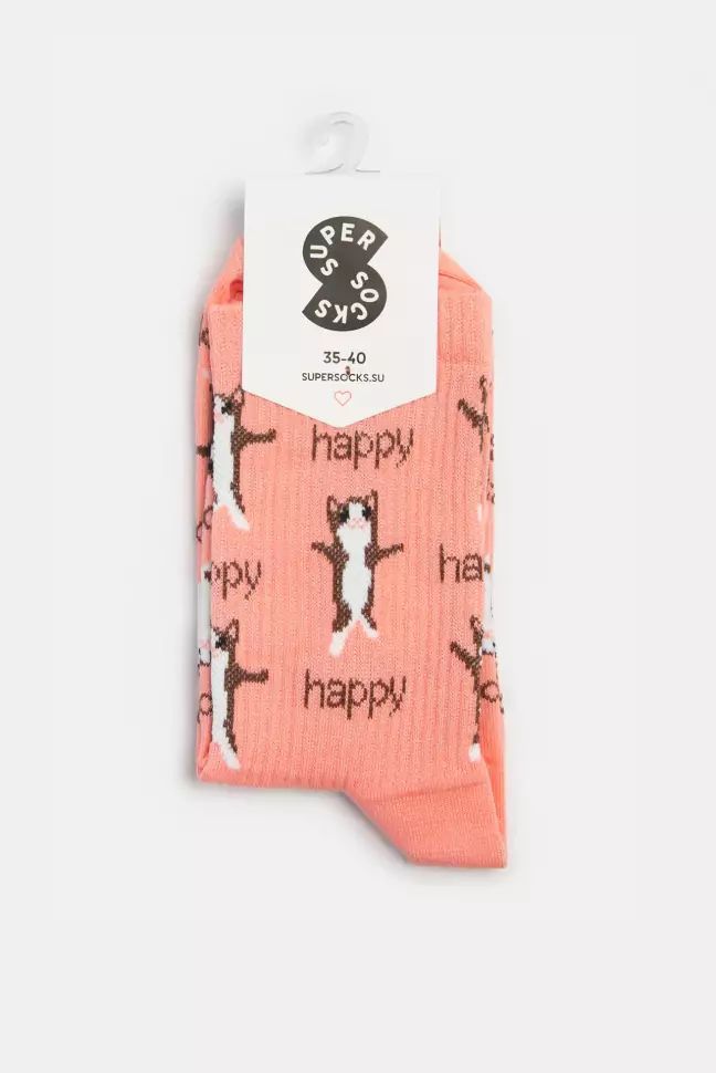Носки SUPER SOCKS Мем Happy Cat паттерн, розовый (размер 35-40)