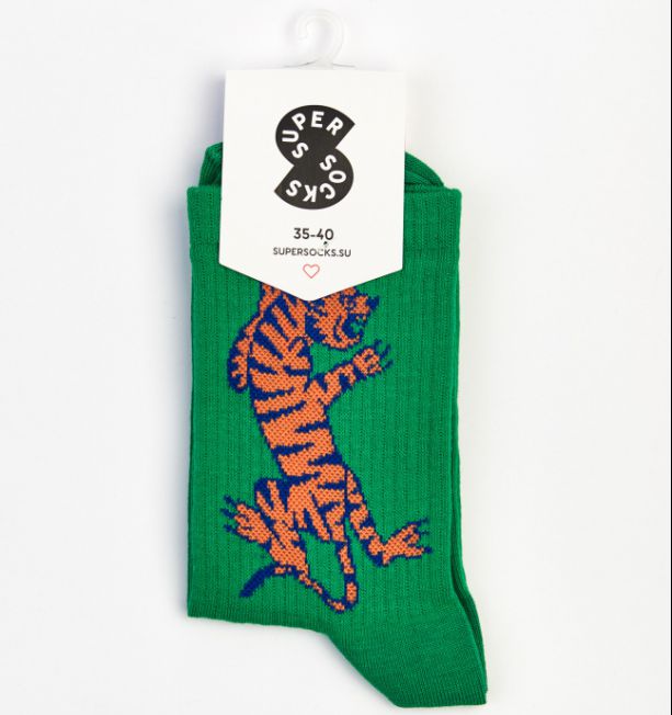 Носки SUPER SOCKS Восточный тигр, зеленый (размер 35-40)