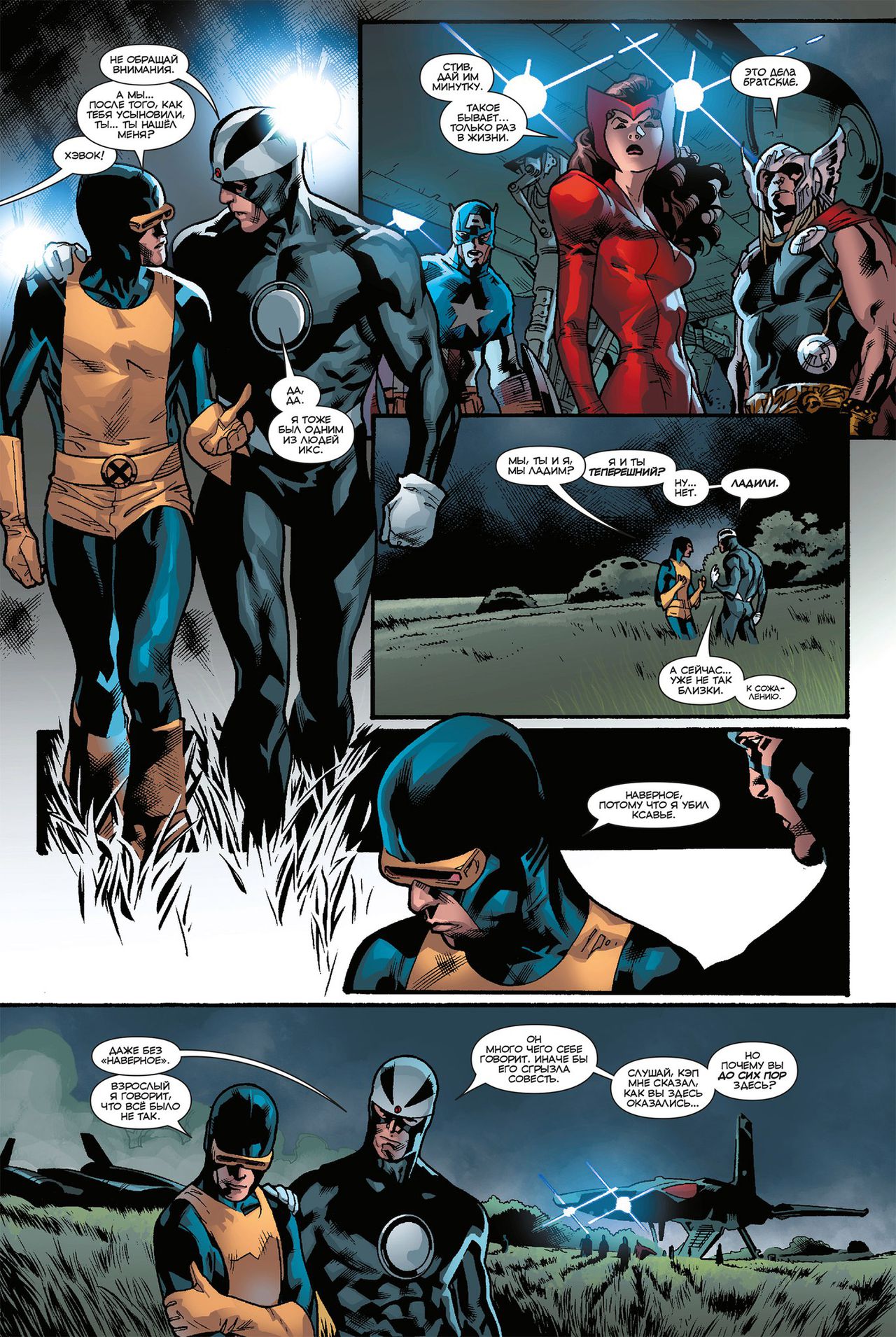 Коварная Мистик подставляет первых Людей Икс, и теперь им предстоит сражение с объединенной командой мутантов и самых сильных героев планеты - Невероятными Мстителями. После событий комикса "Мстители против Людей Икс" Капитан Америка создал эту команду чтобы нормализовать отношения людей и мутантов. Договорятся ли теперь братья Саммерс - или все испортит появление Алой Ведьмы ?