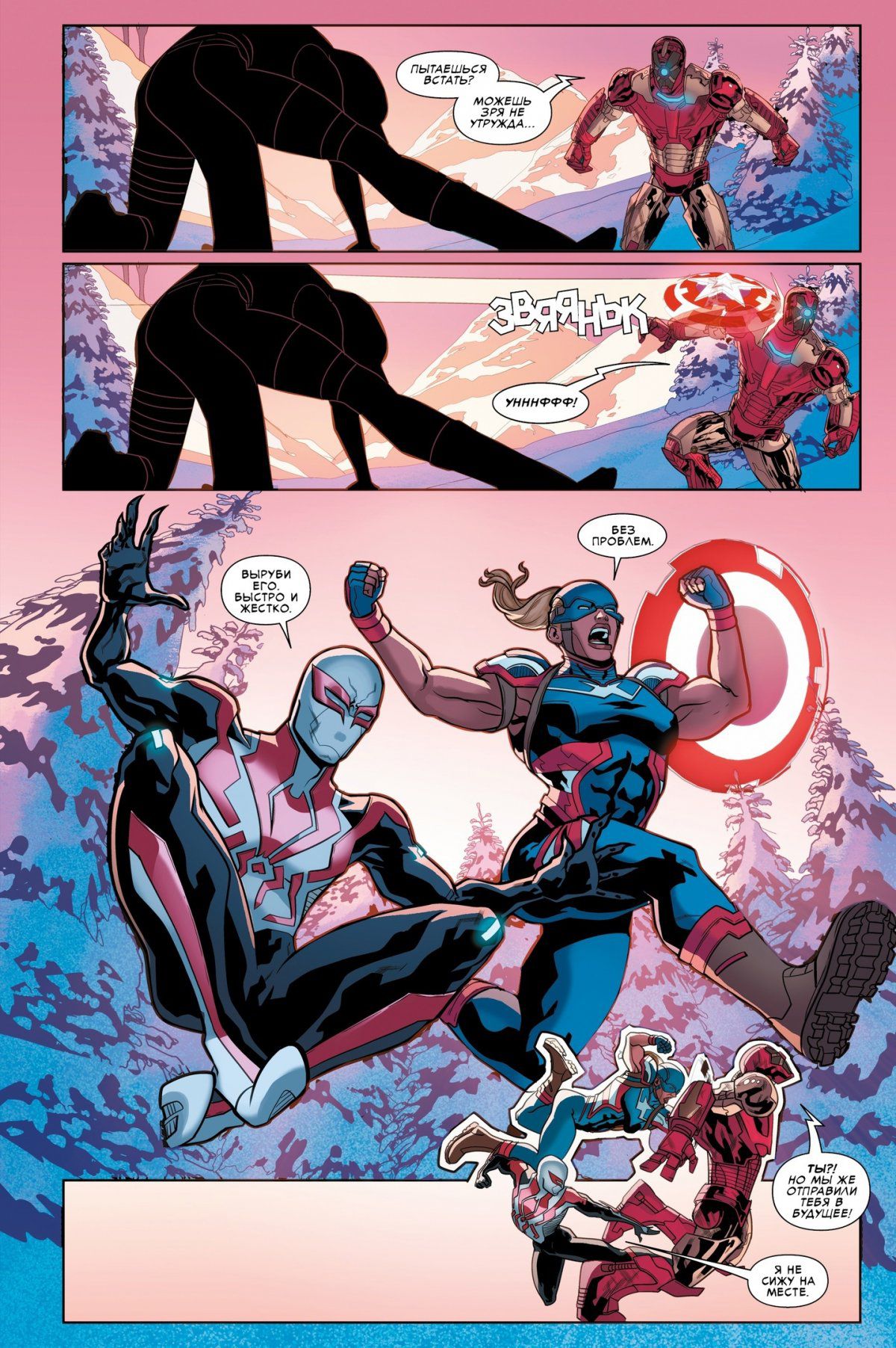 Меж тем в настоящем тайная организация Кулак собирается нанести сокрушительный удар по Соединенным Штатам. Кто за всем этим стоит и кому можно доверять? Как спасти мир от надвигающегося апокалипсиса, если не знаешь, в каком времени вести сражение? Только Человек-Паук из будущего сможет найти верное решение в нужном месте... и в нужное время!"