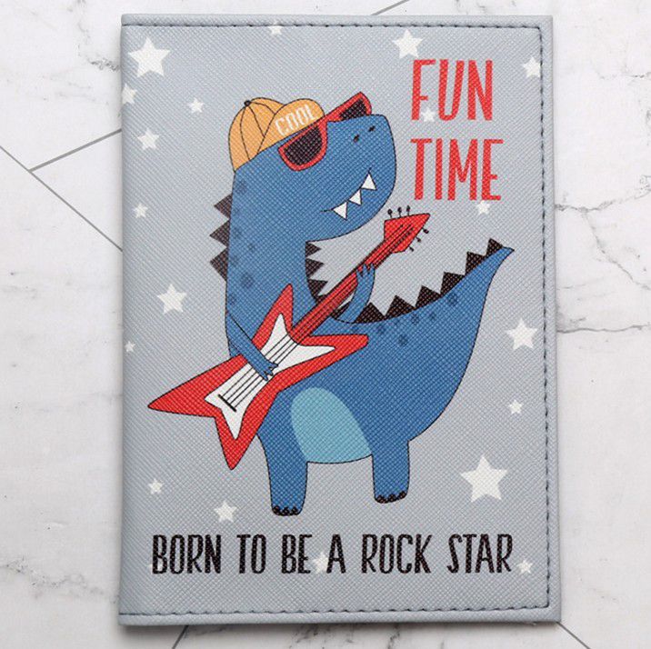 Удобная обложка на паспорт с подкладкой из ткани и дополнительным карманом под банковскую карту. Да еще и с крутым рокерским динозавром :)