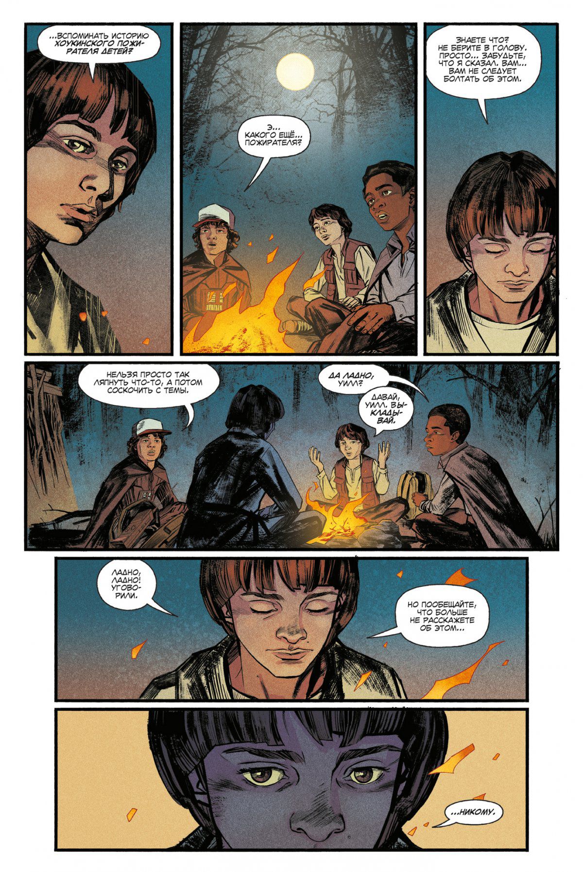 В Хоукинсе наступил Хэллоуин и Уилл, Майк, Лукас и Дастин соби¬раются у костра возле замка Байерса, чтобы наесться праздничных конфет и попугать друг друга страшными историями, одна из которых посвящена самому жуткому секрету их маленького города: хоукинскому пожирателю детей!