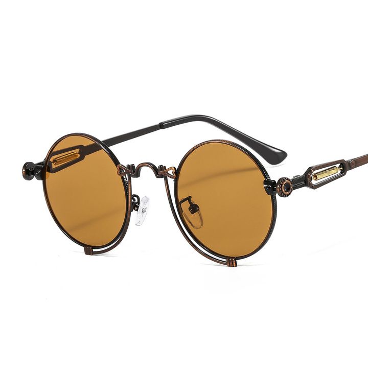 Очки Стимпанк круглые, чёрный чай, медная оправа