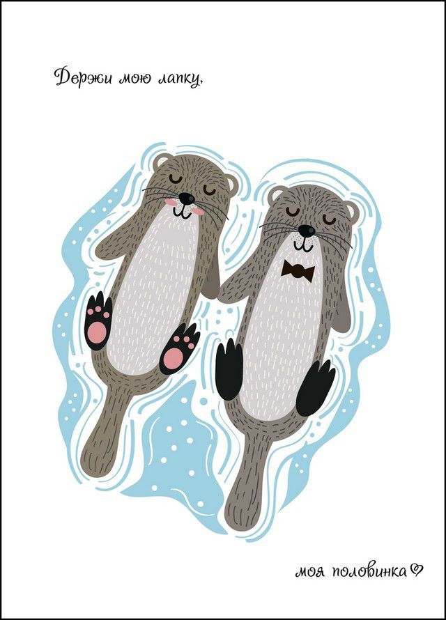 Открытка-карточка с милыми бобрами. В комплекте крафтовый конверт.