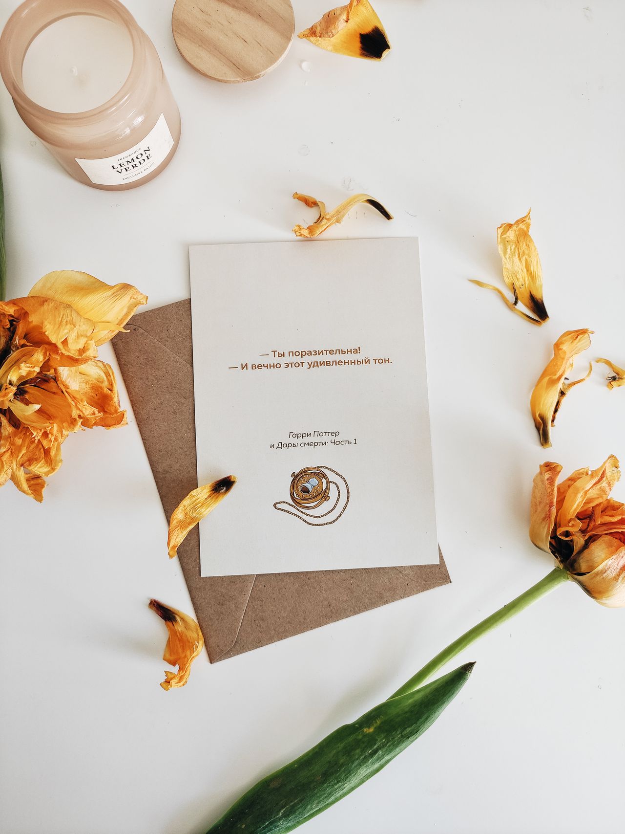 Открытка-карточка с цитатой из фильма Гарри Поттер и Дары смерти. Часть 1. В комплекте крафтовый конверт.
