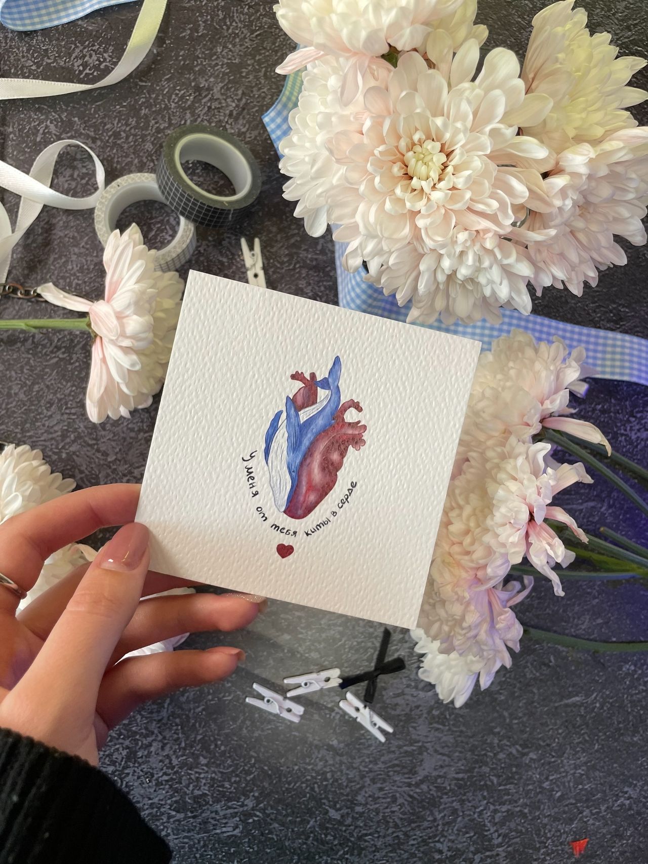 Открытка Киты 10х10