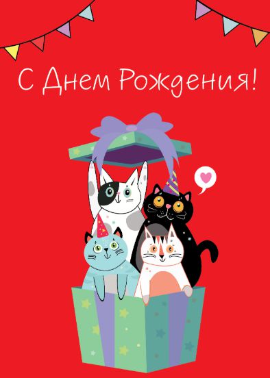 Открытка С Днем Рождения - Коты в коробке с конвертом Art Card 10,4х14,8 см
