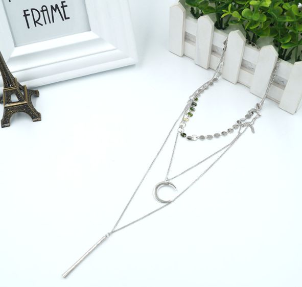 Необычное ожерелье с тремя цепочками: чокер, подвеска с полумесяцем и подвеска с линией :)