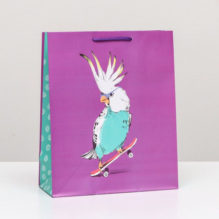 Пакет Попугай на скейте 26 х 32 х 12 см