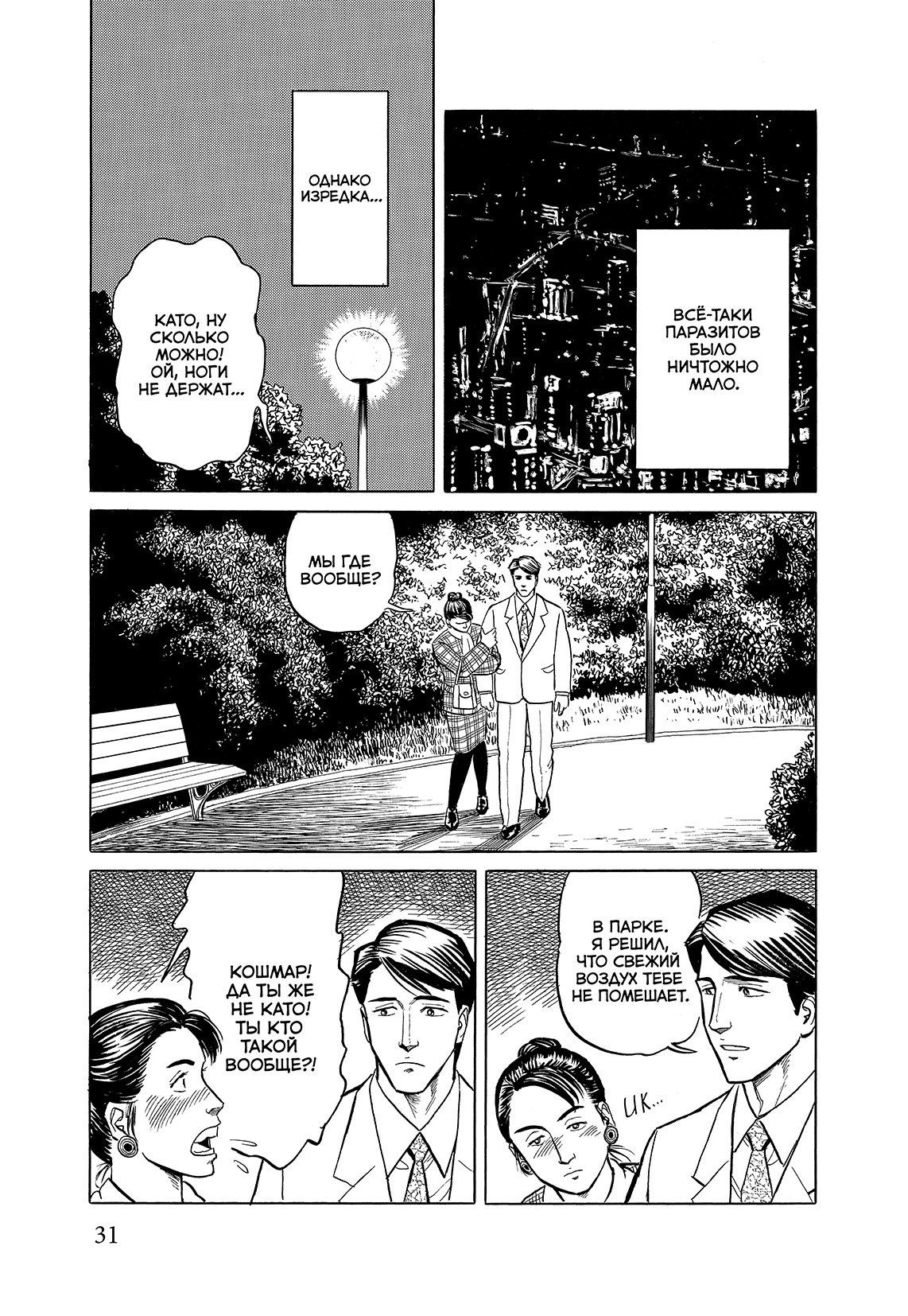 Они просто научились вести себя осторожнее: теперь у них есть сеть «столовых», где они могут без лишнего шума утолить голод. Паразиты пробуют себя в новых ролях: преступный мир и политика — самые многообещающие направления для того, чтобы лучше интегрироваться в общество. В то же время спецслужбы вышли на след паразитов, и Идзуми сразу попал в круг подозреваемых... Борьба за выживание продолжается, но для Идзуми эта борьба на два фронта — ведь он свой среди чужих и чужой среди своих!