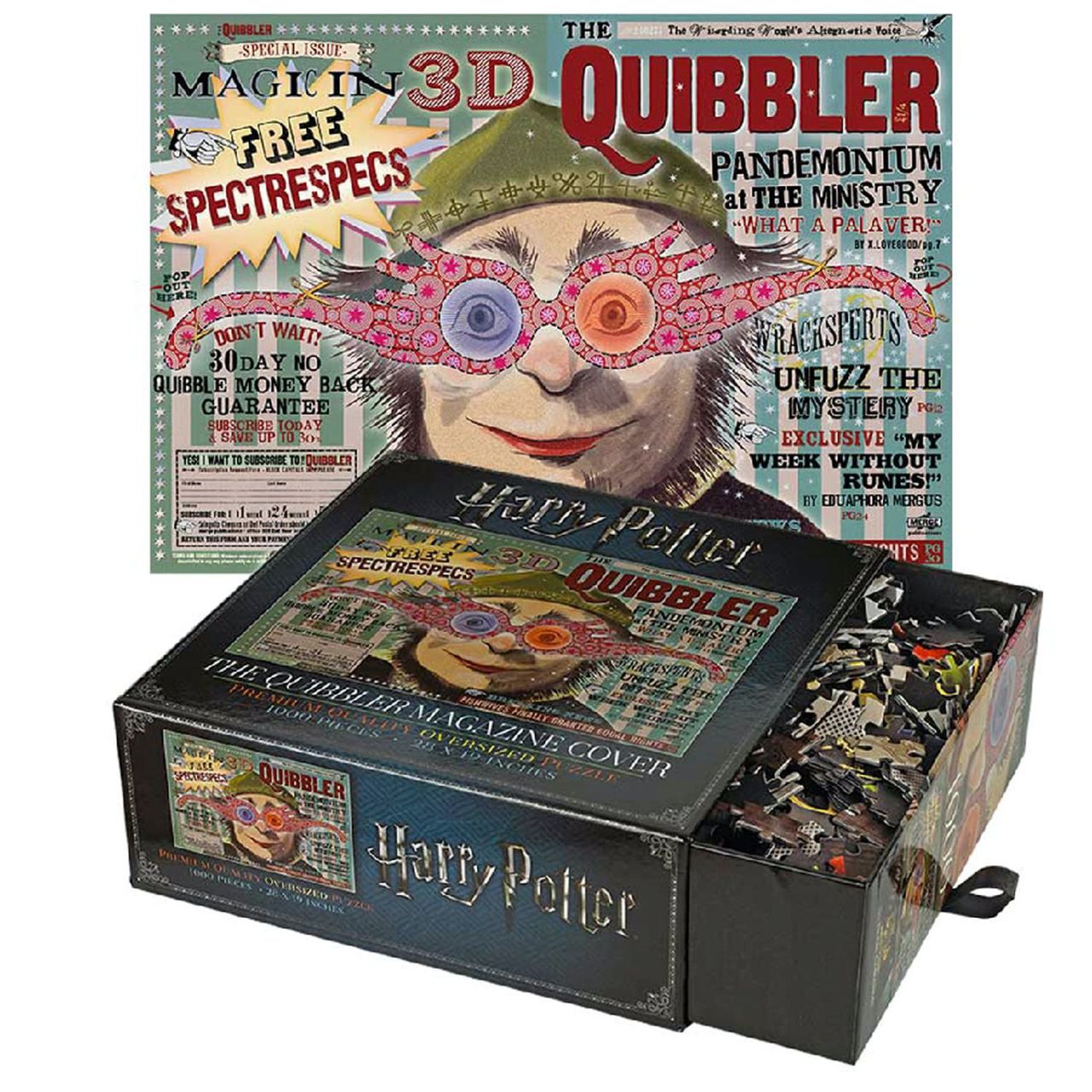 Держитесь подальше от проказ в ожидании нового учебного года в Хогвартсе с помощью этого пазла «Придира». Когда вы соберете пазл, то увидите обложку слегка поблекшего от времени журнала, издаваемого Ксенофилиусом Лавгудом. На «обложке журнала» - заголовки сомнительного происхождения и знаменитые спектрально-астральные очки его дочери Полумны. Пазл поставляется в тематически оформленной коробке, демонстрирующей изображение, которое нужно собрать. Такой пазл станет отличным подарком для поклонников Гарри Поттера и их близких!