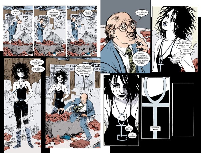 СЭНДМЕН является самой прославленной и вознагражденной множеством премий серией комиксов по очень веской причине: умный и глубокий эпос, элегантно выписанный Нилом Гейманом и проиллюстрированный сменяющимся составом самых популярных художников в сфере комиксов. Это богатая смесь современного мифа и темной фэнтези, в которой литература о современности, историческая драма и легенды сплетены в единое целое. Сага о Сэндмене включает в себя ряд историй, уникальных для графической литературы, и вы её никогда не забудете. Сумасшествие, младшая в большой семье Вечных, просит помощи у Сна в поисках их пропавшего брата Сокрушения, который исчез из своих владений много столетий назад. Их путь лежит сквозь бодрствующий мир, заполненный мельканием кратких жизней, чтобы завершится встречей с Сокрушением на острове в Эгейском море, хранящем голову Орфея. Эта встреча многое изменит, изменит навсегда. Вечные сущности или краткие жизни – у них гораздо больше общего, чем им хотелось бы знать. И чтобы сделать это знание выносимым, лучше притворится, что не обладаешь им.