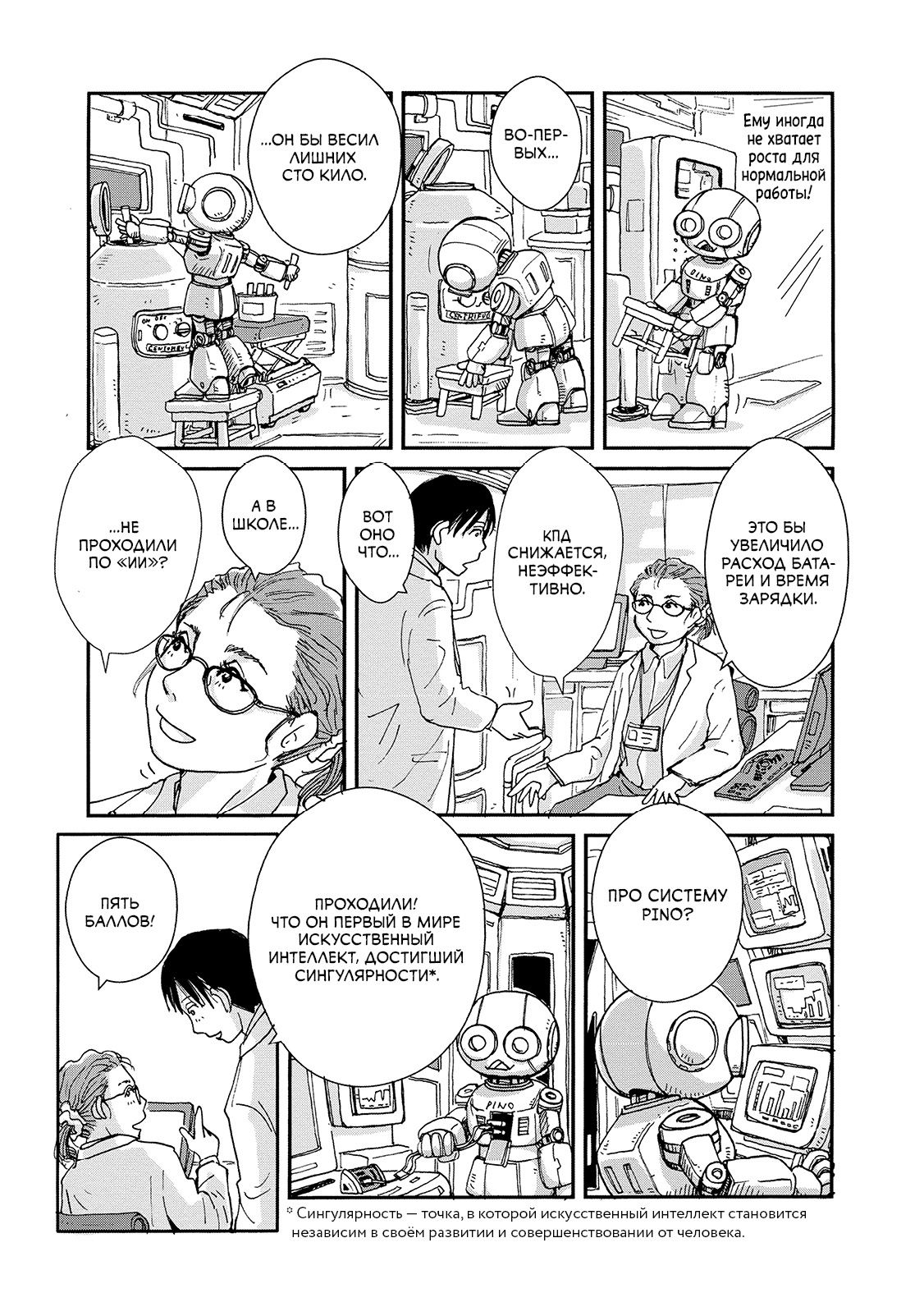 Пино — гуманоидный робот с искусственным интеллектом, достигший сингулярности. Он чётко следует заложенным в него инструкциям и старается сделать жизнь людей лучше даже несмотря на то, что многие относятся к нему с предубеждением. Но что он выберет, когда на чашах весов окажутся его собственная безопасность и благополучие человека?