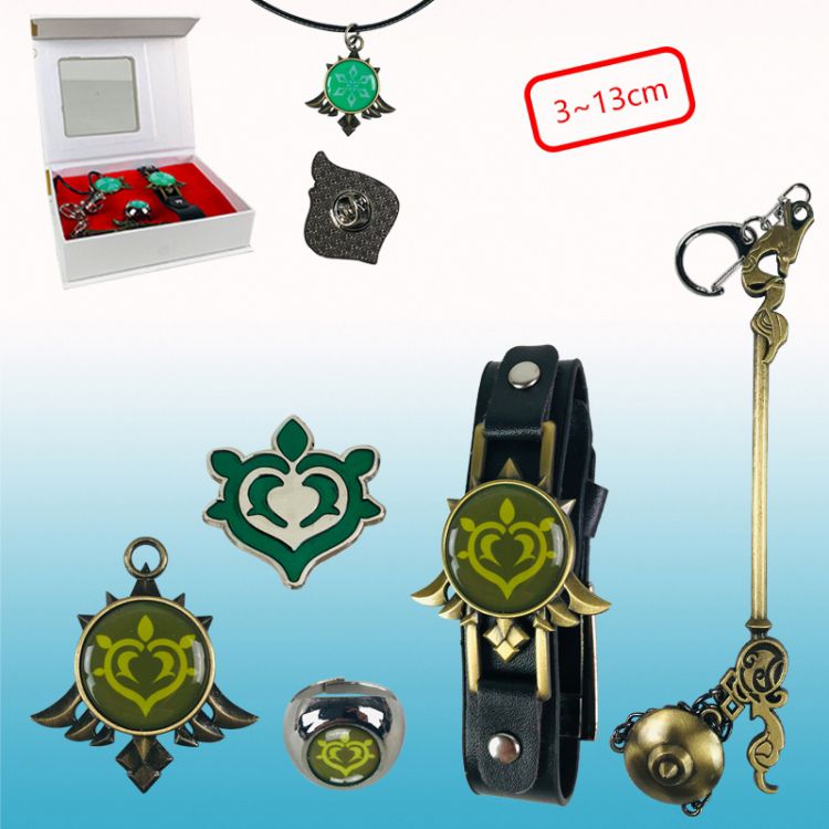 Подарочный набор Геншин Импакт - Дендро (Браслет + пин + брелок + кольцо + подвеска)