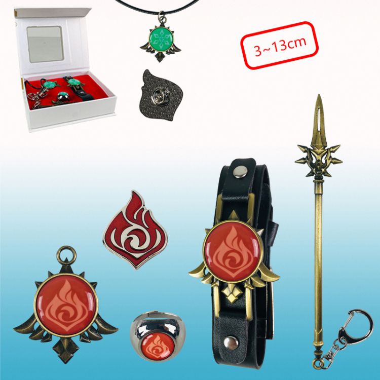 Подарочный набор Геншин Импакт - Пиро (Браслет + пин + брелок + кольцо + подвеска)