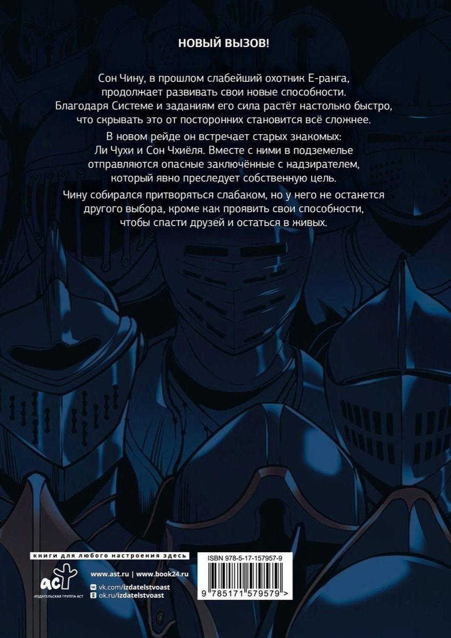Сон Чину, в прошлом слабейший охотник Е-ранга, продолжает развивать свои новые способности. Благодаря Системе и заданиям его сила растёт настолько быстро, что скрывать это от посторонних становится всё сложнее.