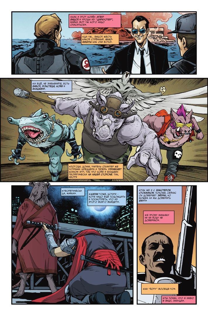 Черепашки переносятся в странное и опасное Измерение Икс, чтобы раз и навсегда покончить с террором Крэнга! Но сначала вас радушно приглашают на ежевековое собрание Пантеона – бессмертной семьи, которая влияет на ход истории. О чём они говорят? О судьбе Подростков Мутантов Ниндзя Черепашек! Что случится, когда они поймут, что мутанты могут грозить их мировому порядку? Создано Томом Валтсом, Кевином Истменом, Дейвом Вехтером и Кори Смитом.