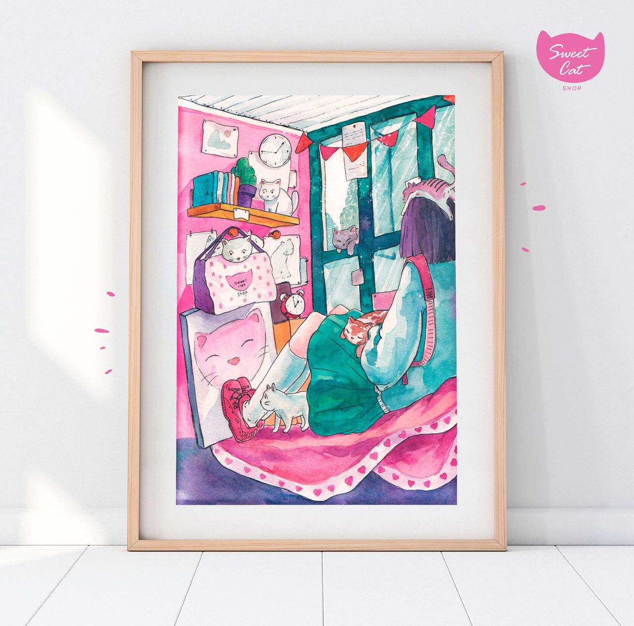 Постер Девушка и коты купить в интернет-магазине «Хочу!» | Доставка по Москве и России