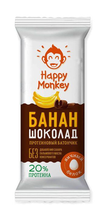 Состав: финиковая паста, ореховая паста Happy Monkey "Фундук" (жареный фундук, жареный арахис, сироп топинамбура, какао, морская соль), сухой яичный белок, сублимированный банан, какао. натуральный ароматизатор "Банан", "Шоколад"