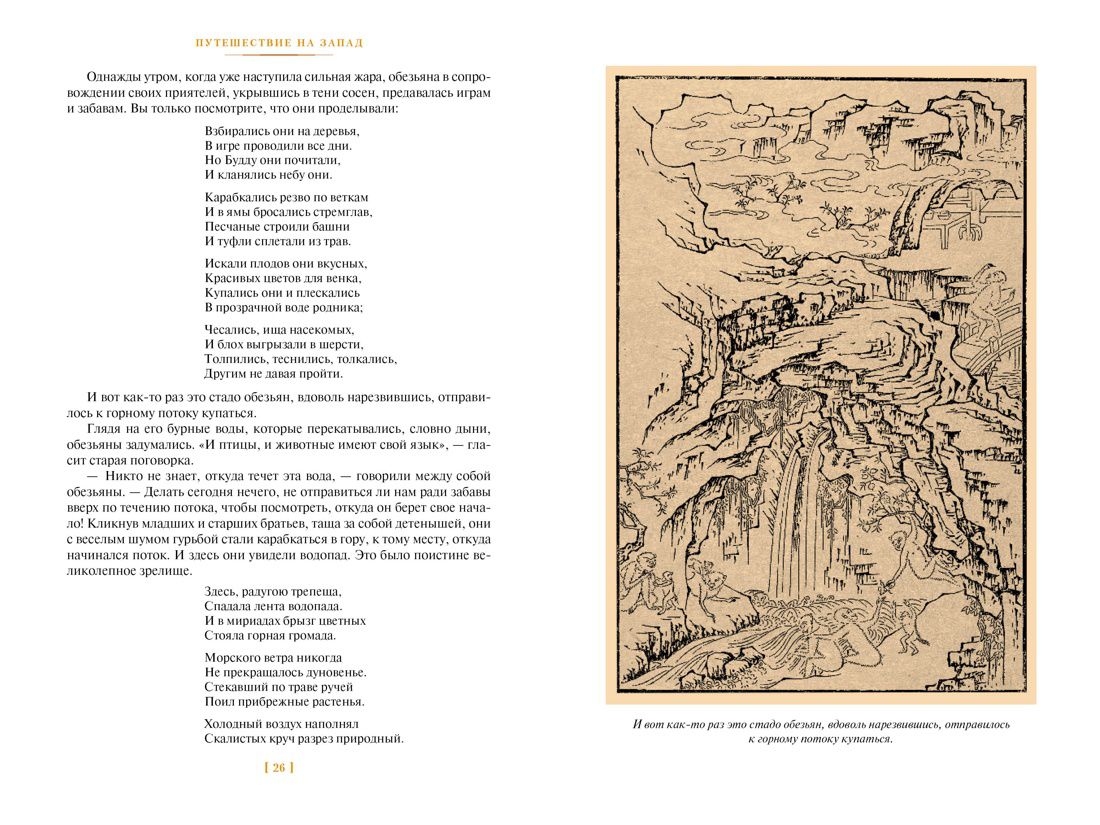 Легендарный роман «Путешествие на Запад» — одно из самых известных классических произведений китайской литературы. Нет числа экранизациям, театральным постановкам, видеоиграм, аниме-сериалам и разнообразным версиям этой книги. О его влиянии на культуру Востока и Запада можно написать отдельный том, который ненамного уступит по объему оригинальному произведению. В основу романа легли предания о путешествии китайского монаха Сюань-цзана и Царя обезьян Сунь У-куна в Индию за священными книгами. Какие только невероятные приключения не переживают герои! Они сражаются с демонами и небесными силами, обдуряют драконов и злых духов, попадают на небеса и под землю, преодолевают самые ужасные ловушки и препятствия. При этом книга является бесценным источником знаний о Древнем Китае: читатель знакомится с жизнью и бытом императоров, сановников, полководцев, монахов, ремесленников, подробно узнаёт о флоре и фауне и, конечно, о многочисленных духах, божествах и демонах, населявших в ту пору каждый уголок Поднебесной. Текст печатается в полном объеме по четырехтомнику, выпущенному в 1959 году Государственным издательством художественной литературы, и сопровождается (впервые в России!) полным комплектом (200 гравюр!) оригинальных иллюстраций двух художников, живших в эпоху династии Мин.