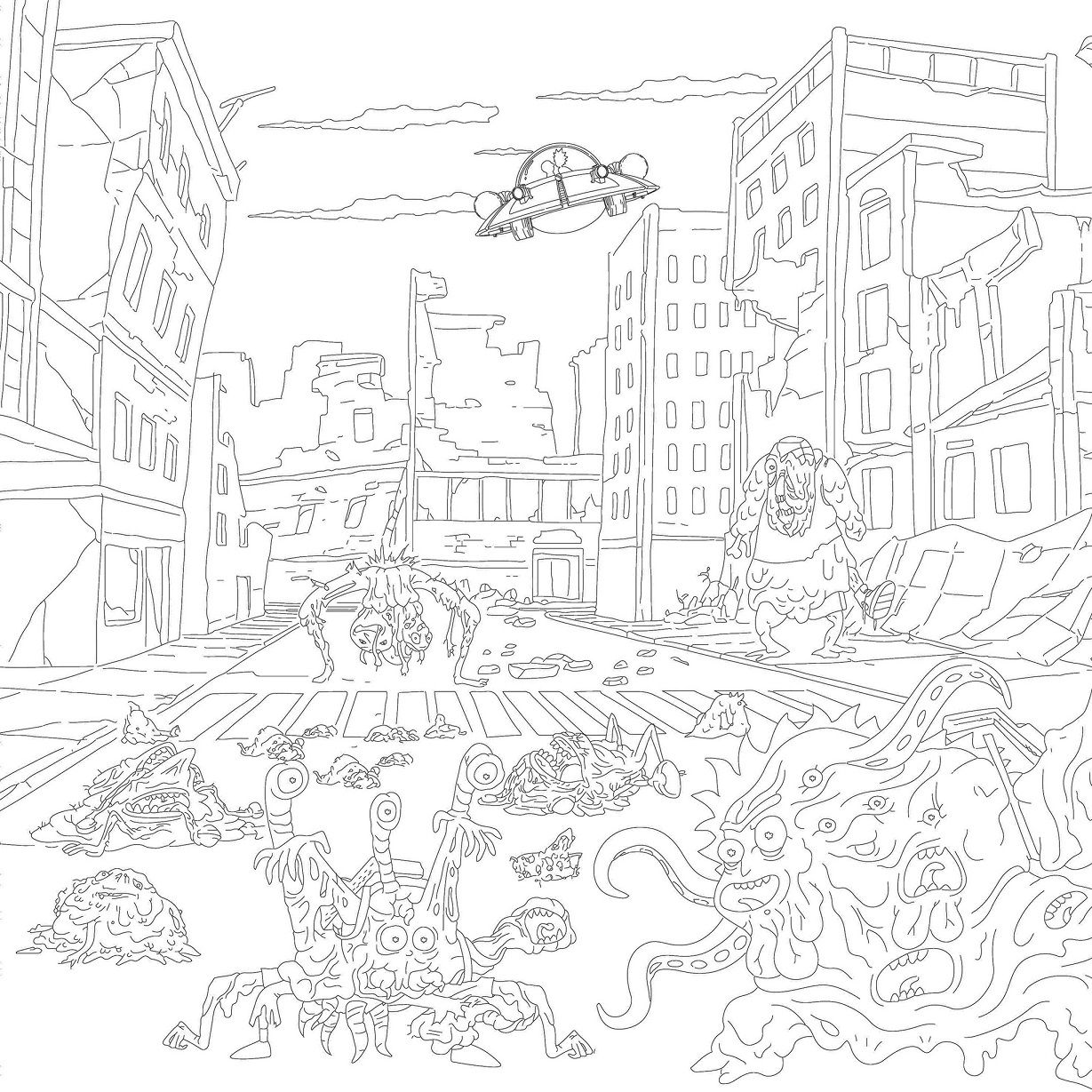 Здесь вас ждут все те же любимые герои, опасные и нелепые ситуации, погони и взрывы. Но теперь они стали подвластны... именно вам! Скорее хватайтесь за карандаши/ фломастеры/ ручки (нужное подчеркнуть) и «оживляйте» черно-белые страницы! Какого цвета сегодня будут волосы Рика? А его летающая тарелка? А глаза у кроненбергов? Решаете только вы!