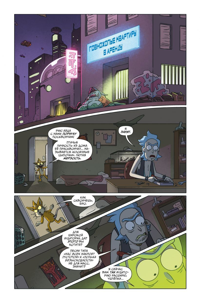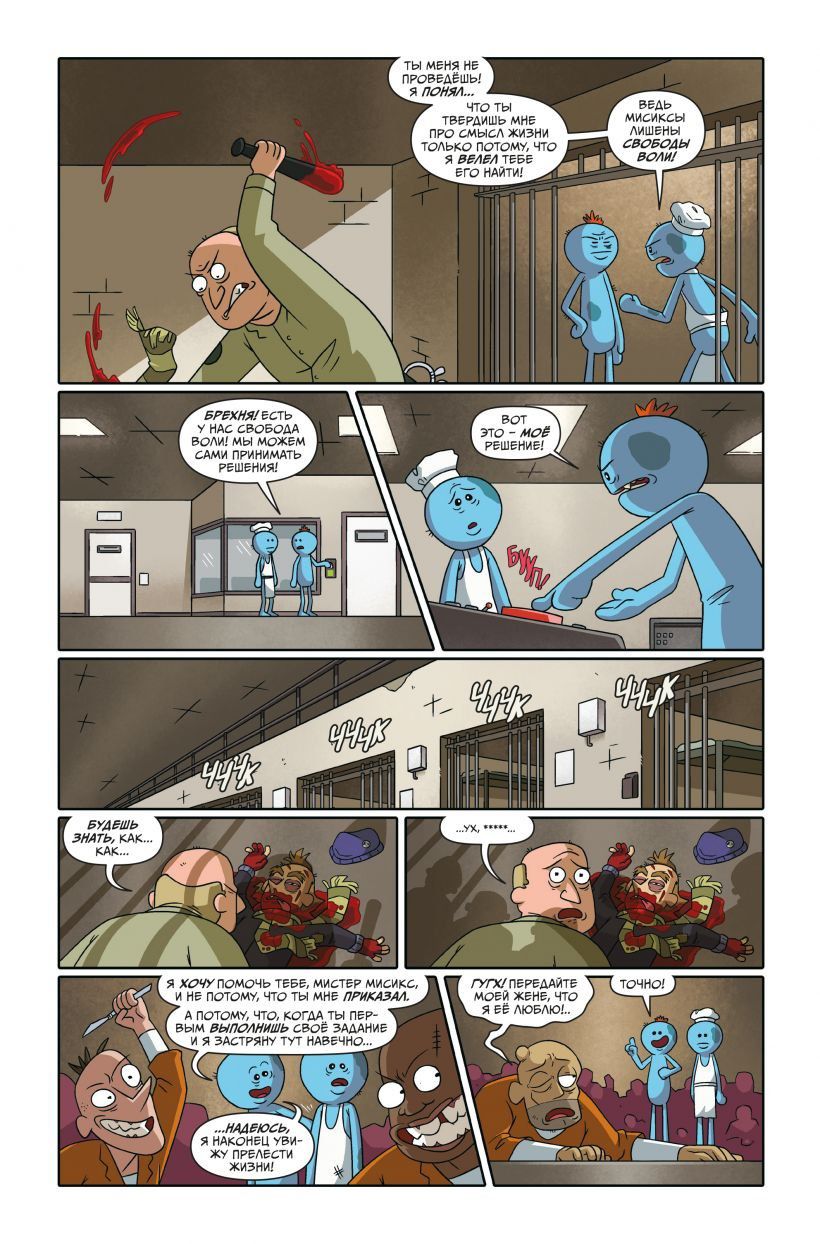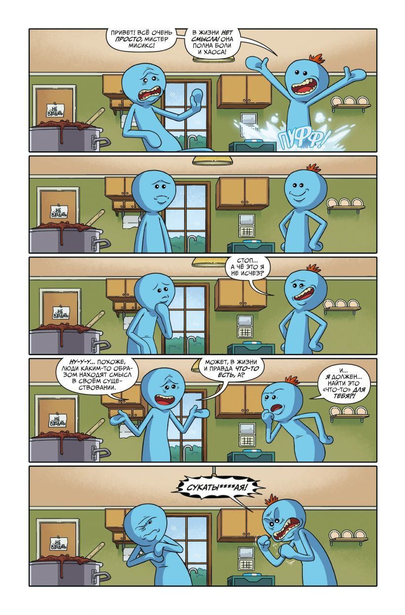 Вы держите в руках невероятный второй том серии! Вас ждут любимые герои и их приключения, придуманные и нарисованные самыми талантливыми молодыми авторами. Сценарист Райан Ферье ("Подростки Мутанты Ниндзя Черепашки", D4VE) расскажет, как ДЖЕРРИ стал жертвой внутренних демонов, самых настоящих! Невероятный выпуск! Джеймс Асмус (Quantum and Woody, Gambit) и Джим Фестанте (Fied Tripping, The End Times of Bram and Ben) спросят у МИСТЕРА МИСИКСА в чём смысл жизни, но ответ выяснить непросто! Смогут ли они это сделать и найти избавление в сладкой смерти? Лайла Стёрджес ("Дровосечки", The Magicians) покопается в прошлом старой группы Рика под названием "МЯСНЫЕ ЗАНАВЕСКИ" и узнает, как они едва не заплатили жизнью за популярность! А в самом конце вас ждёт появление ЮНИТИ (бывшей Рика)! Тини Ховард покажет, что Рик Санчез всё ещё не может устоять перед её женскими прелестями! Над комиксами работали художники Сиджей Кэннон и Марко Маццарелло, колорист Джошуа Перес, а за леттеринг отвечал Crank!