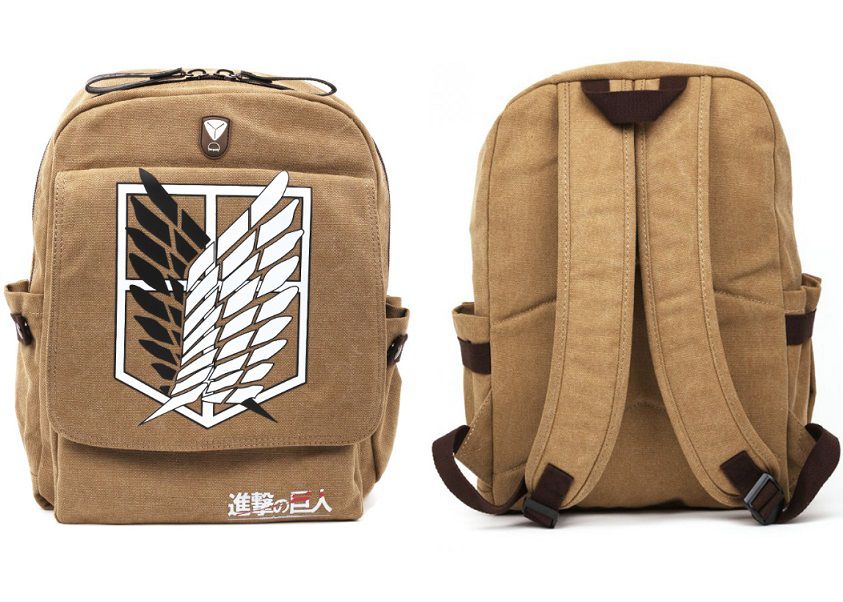 Их логотип – Крылья Надежды, он символизирует, что однажды люди вернут себе былое величие. Именно этот знак красуется на стильном коричневом рюкзаке бойца, представляющего Разведкорпус: