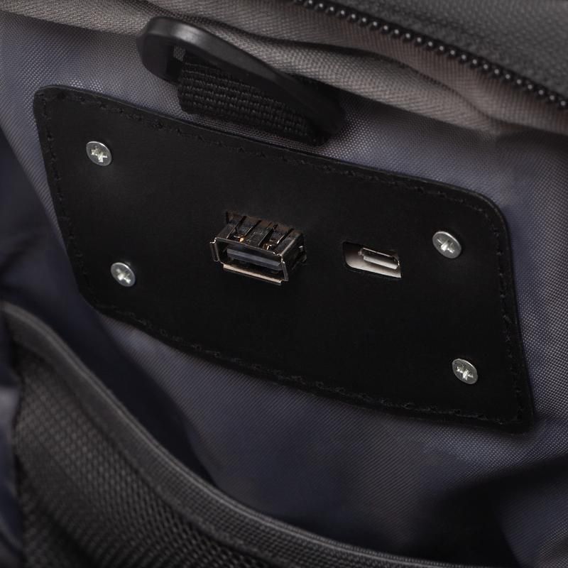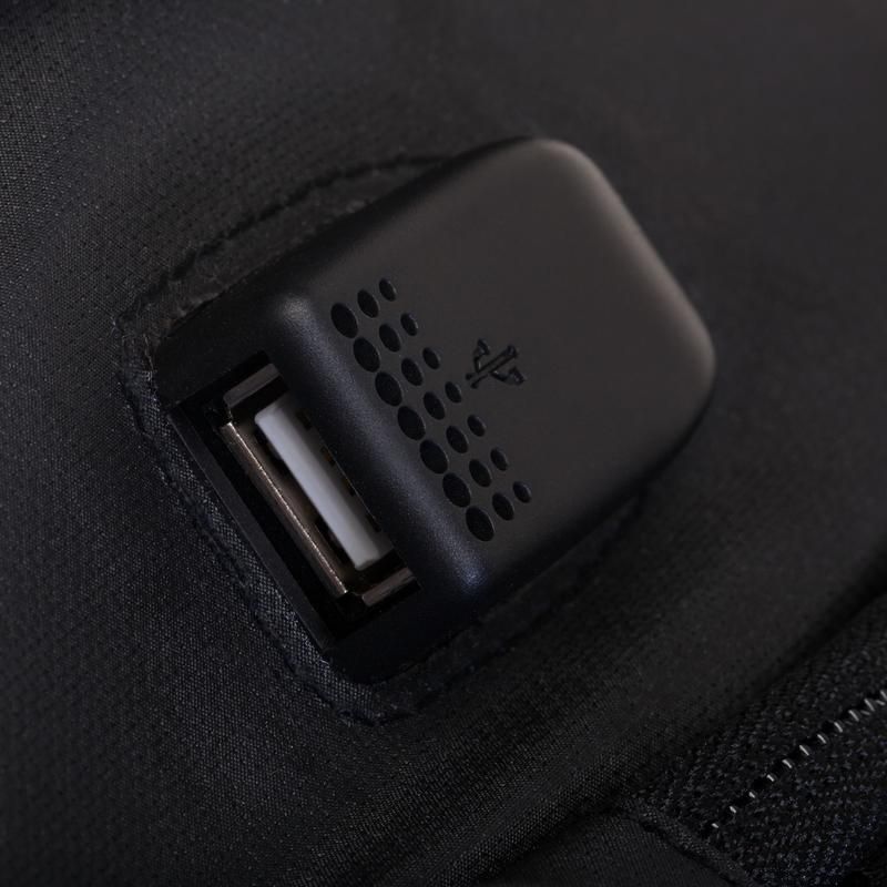 1. Встроенный powerbank на 10000 mAh спрятан в рюкзаке. При необходимости можно достать. 2 USB-разъема. 1 внутри, другой выведем в лямку рюкзака.