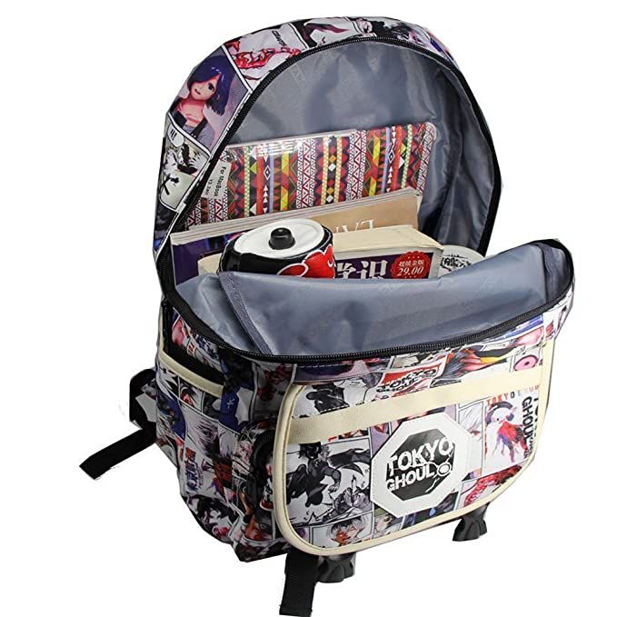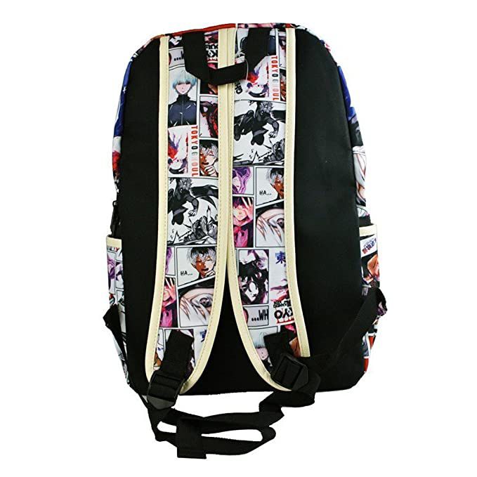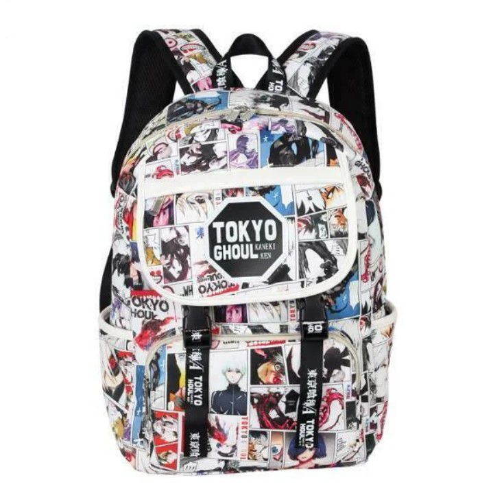 Рюкзак для ценителей популярной манги «Токийский Гуль» из влагоотталкивающей ткани. Удобные внешние карманы, а также органайзер для ноутбука внутри.