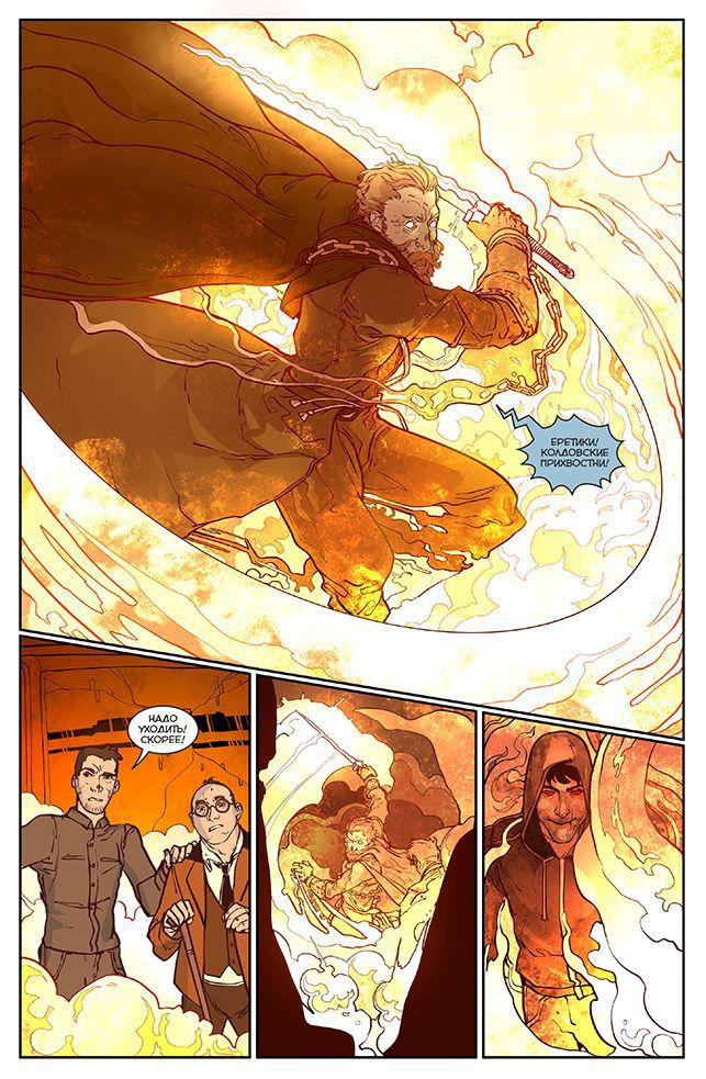 Третий том содержит выпуски комикса «Экслибриум» №11-17 (истории «Благими намерениями» и «Меж трёх огней»), а также уникальные дополнительные материалы: скетчи, концепты, эскизы персонажей и комментарии создателей комикса.