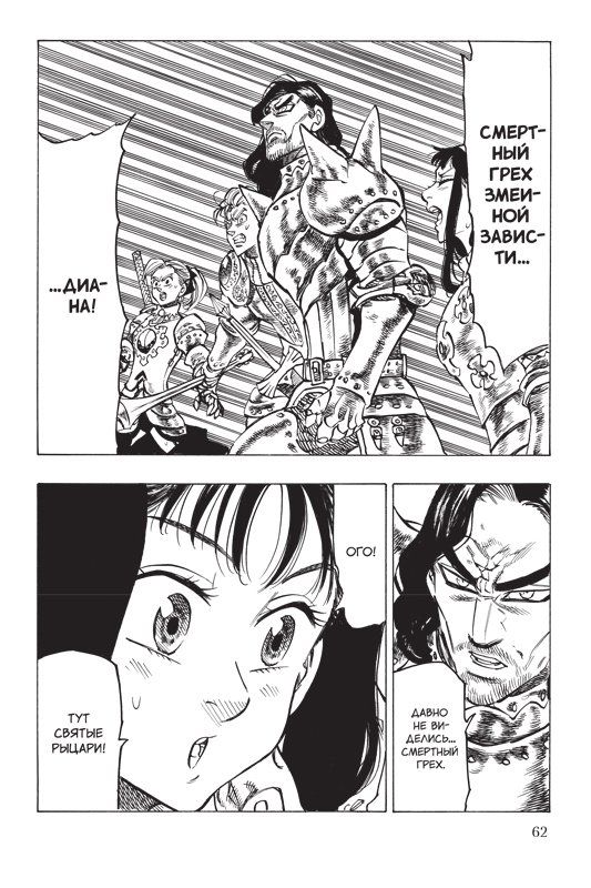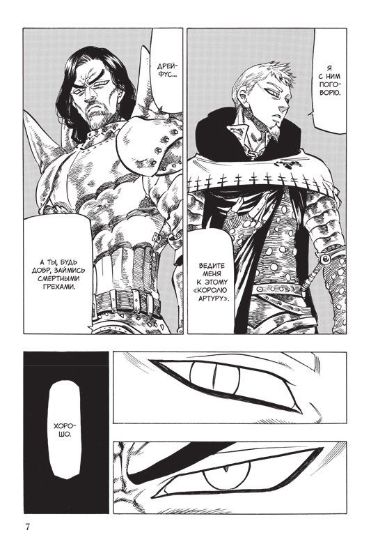 Мелиодас, Бан и Гаутер отправляются в столицу, чтобы спасти похищенную Элизабет. Казалось бы, втроем у них нет шансов против войска Святых рыцарей, но тут в битву вступает третья сила: Артур, король Камелота, во главе целой армии. Да и между Святыми рыцарями, как оказалось, давно зрели разногласия… Бывшие союзники становятся врагами, весь город превращается в арену кровопролитной битвы — неужели это начало Священной войны?..