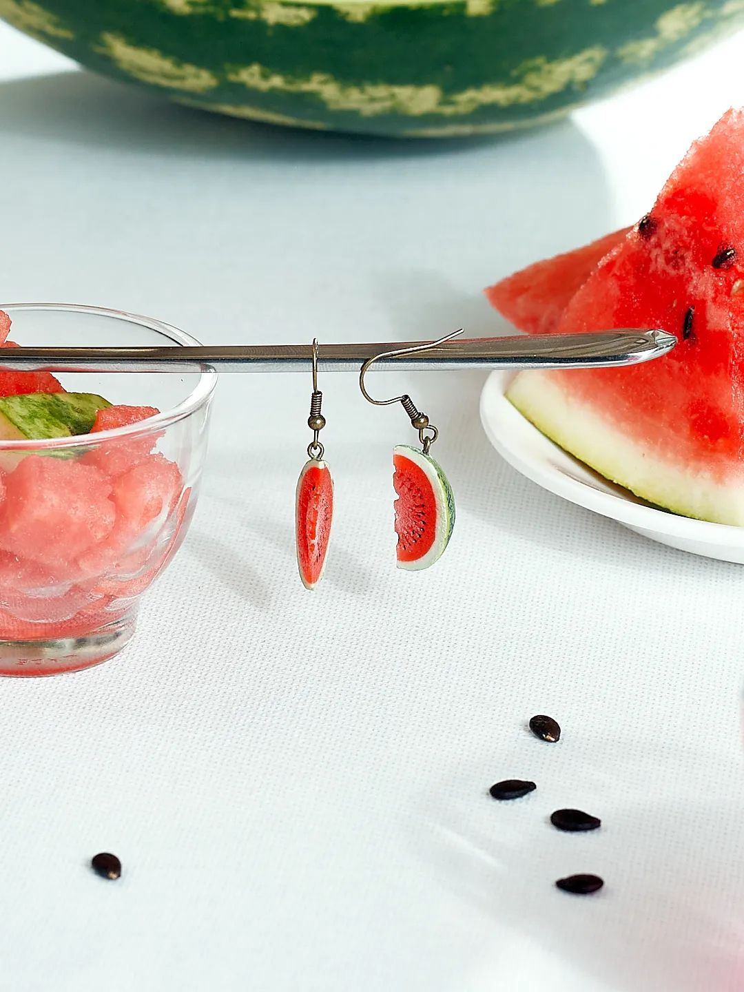 Серьги ручной работы от Питерской мастерской ArtAttic в виде долек арбуза