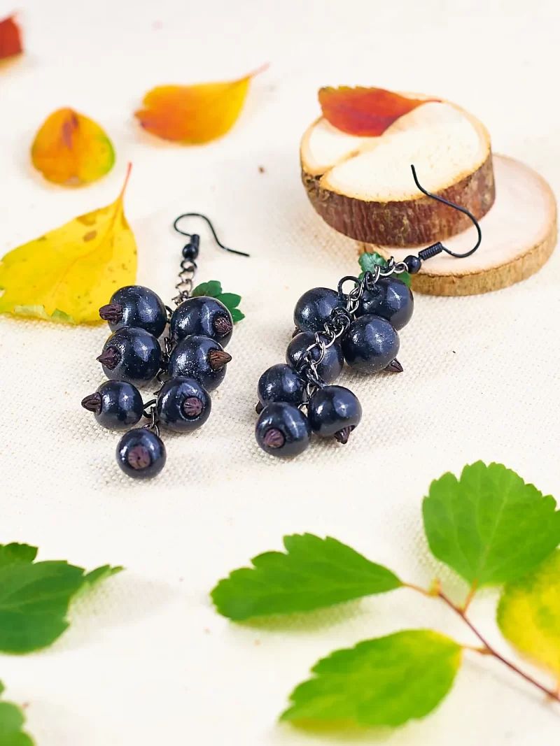 Серьги ручной работы от Питерской мастерской ArtAttic в виде грозди черной смородины!