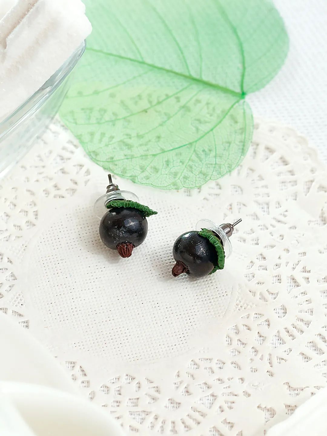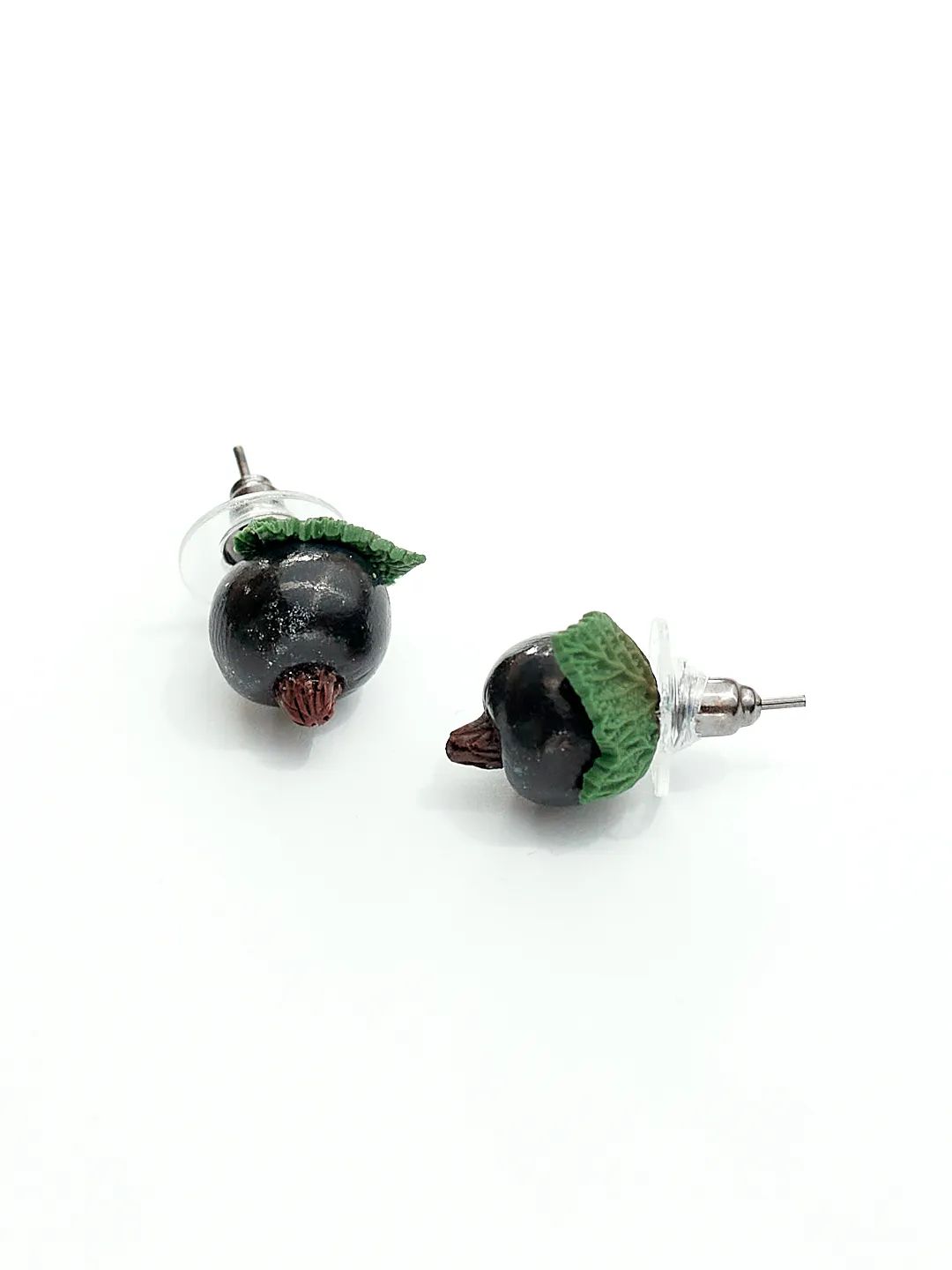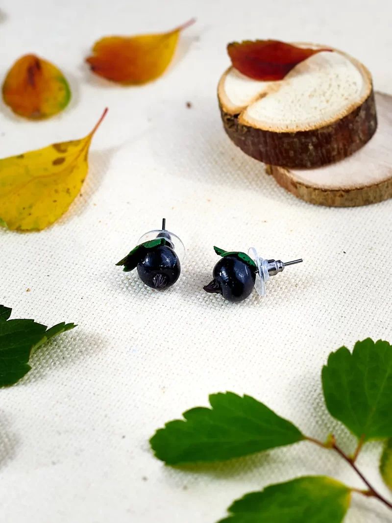 Серьги ручной работы от Питерской мастерской ArtAttic в виде черной смородины с листами!