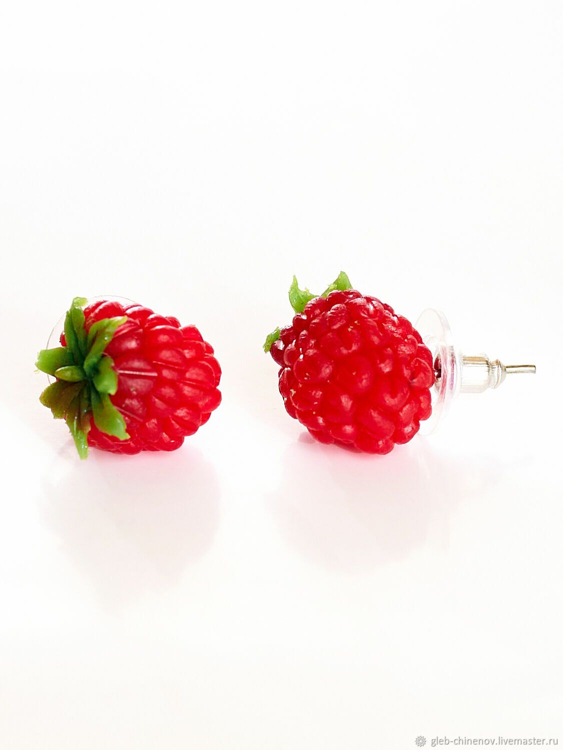 Серьги ручной работы от Питерской мастерской ArtAttic в виде малины с чашелистиком
