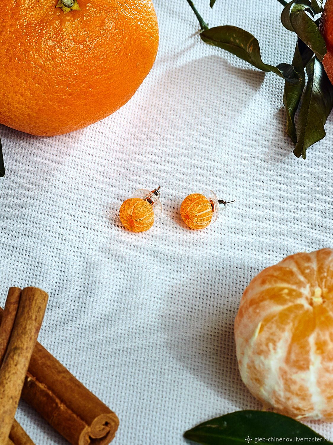 Серьги ручной работы от Питерской мастерской ArtAttic в виде целого очищенного мандарина