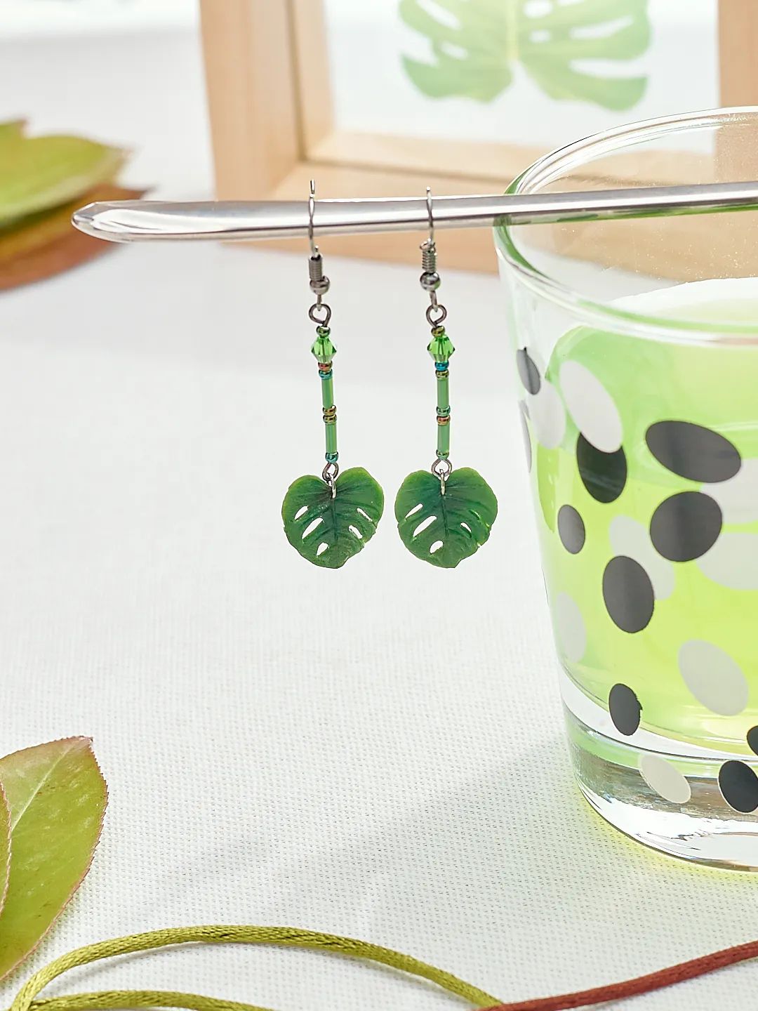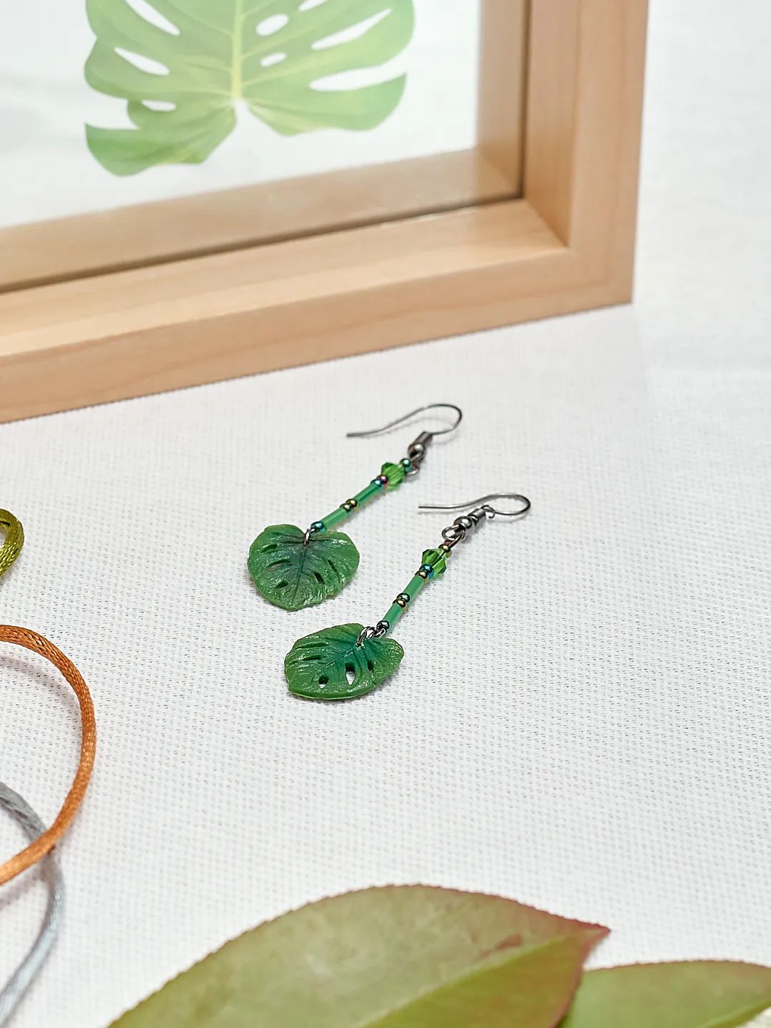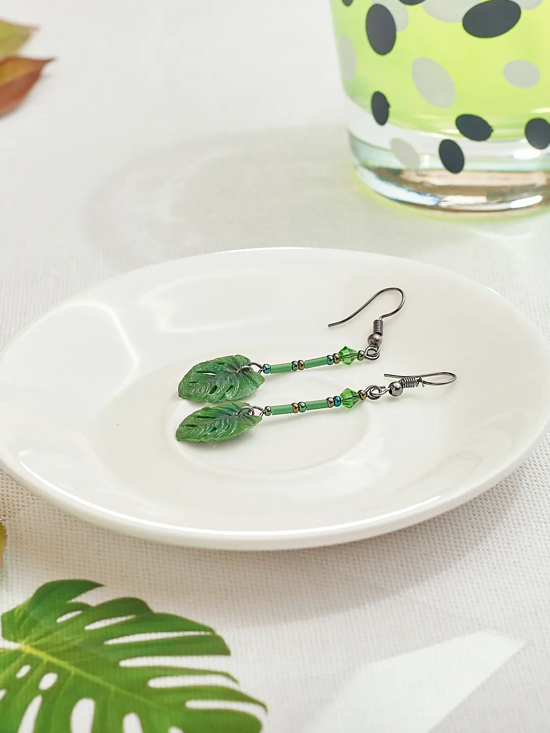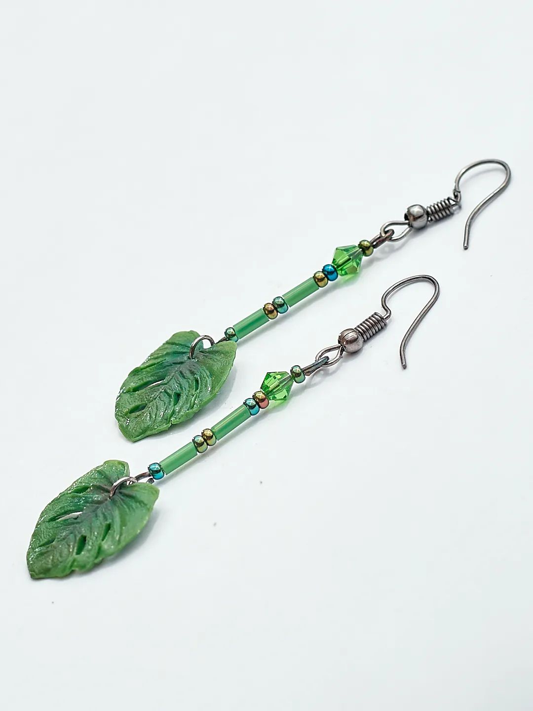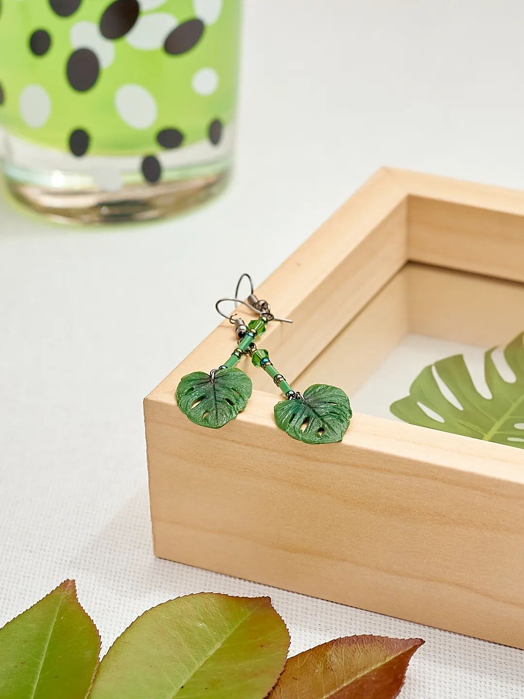 Серьги ручной работы от Питерской мастерской ArtAttic в виде листов монстеры