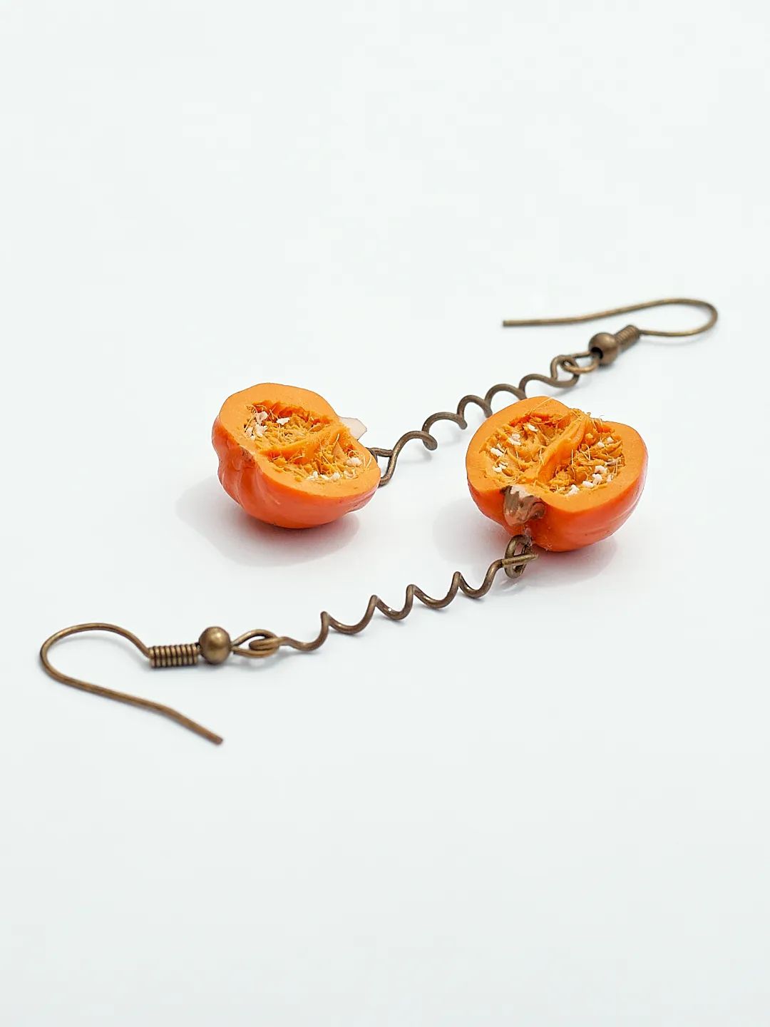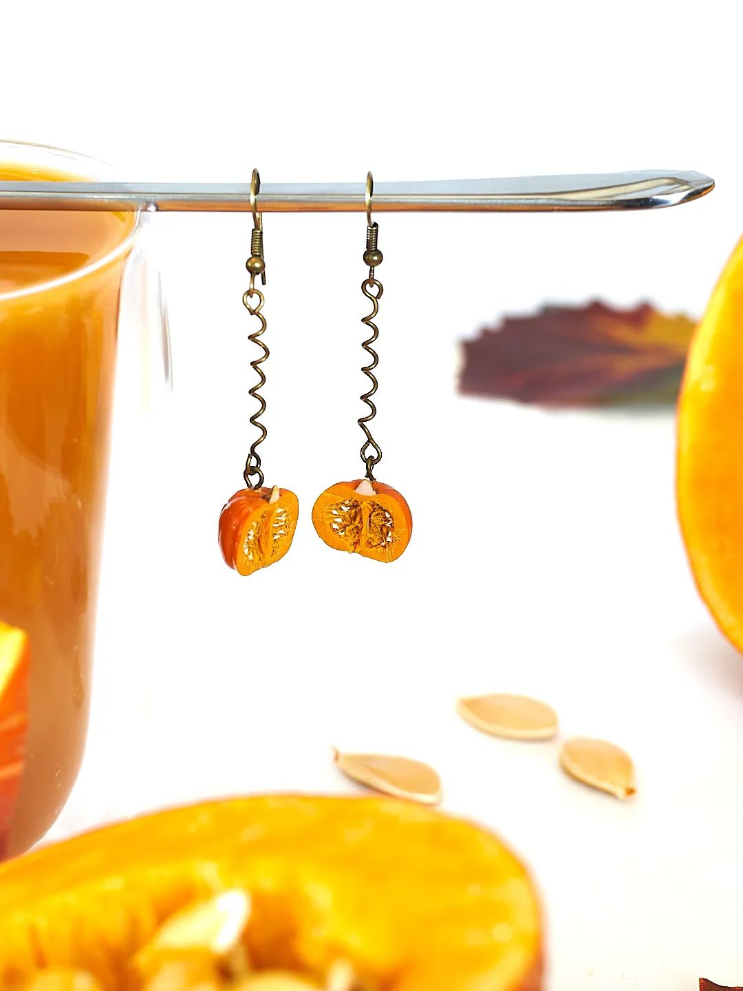 Серьги ручной работы от Питерской мастерской ArtAttic в виде половинок тыквы!