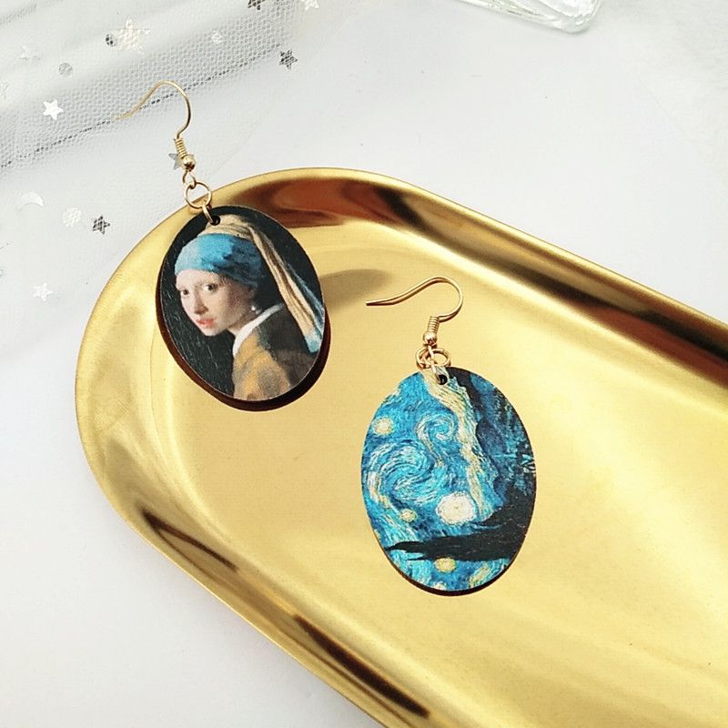 Самые высоко культурные серьги в мире! На одной сережке изображена знаменитая картина Ван Гога "Звездная ночь". На второй сережке изображена картина чуть менее знаменитого нидерландского художника Яна Вермеера "Девушка с жемчужной серёжкой".