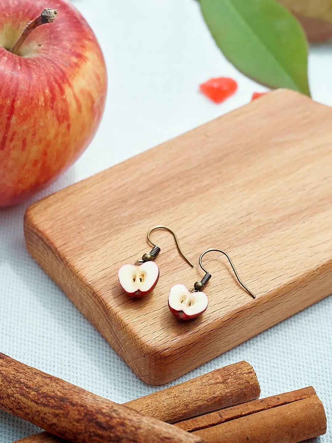 Серьги ручной работы от Питерской мастерской ArtAttic в виде половинок яблок
