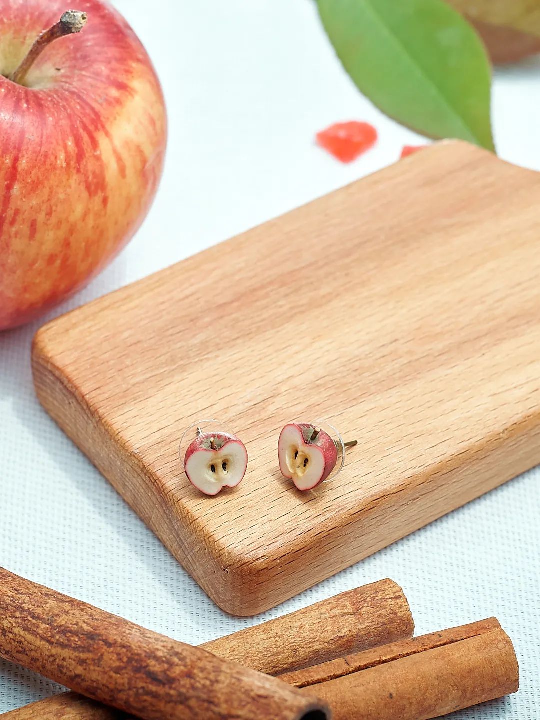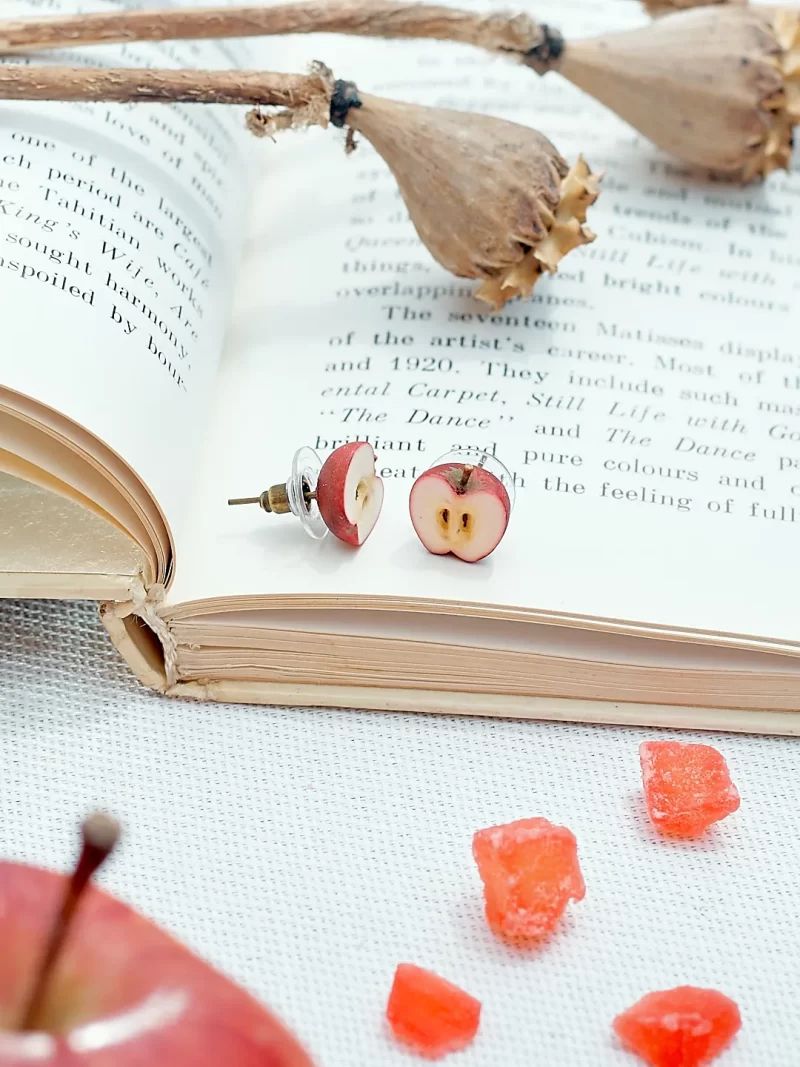 Серьги ручной работы от Питерской мастерской ArtAttic в виде половинок яблок