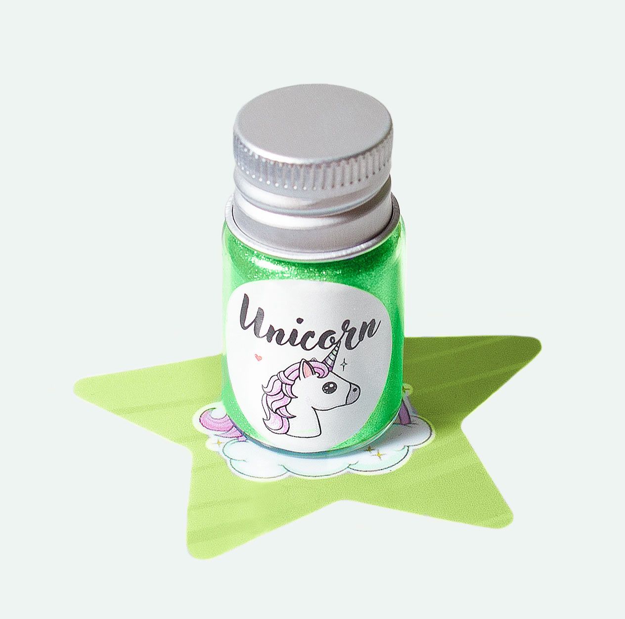Фирменный шиммер The Unicorn для напитков и кальянов. Цвет Mint — нежный мятный.