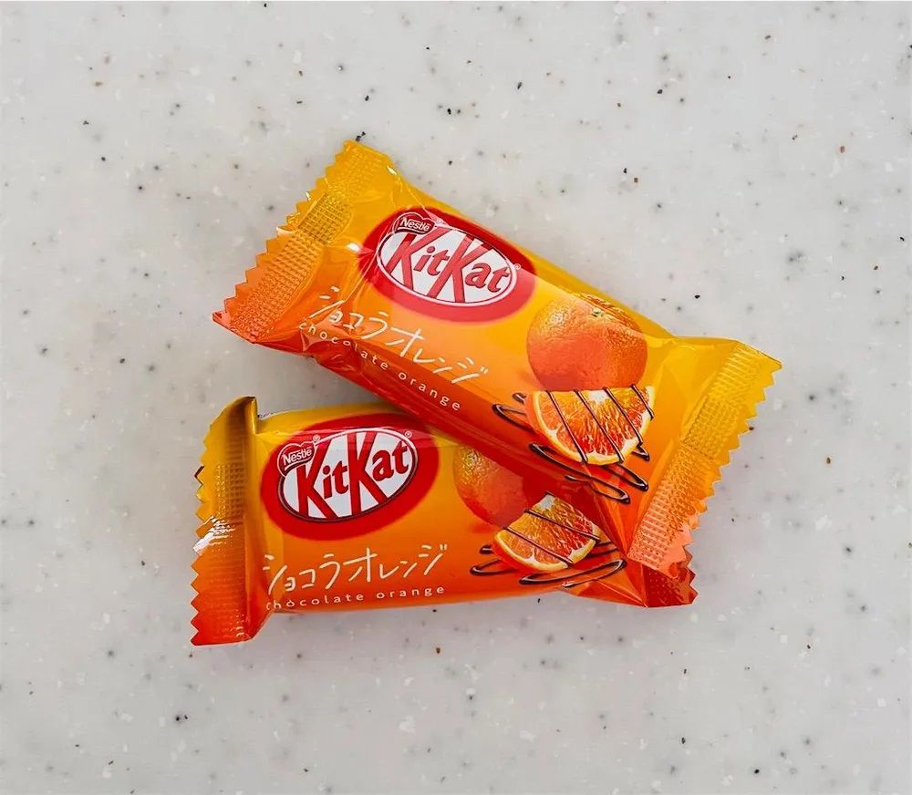 Один из наиболее редких КитКатов - со вкусом апельсина Микан. Батончики на основе горького шоколада с ярким и очень приятным послевкусием сочного апельсина.