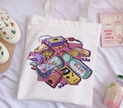 Шоппер с залипательным принтом - популярные снеки, геймбой, плеер - все это атрибуты юного отаку