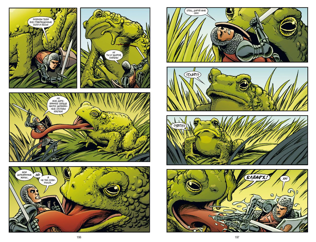 Помимо выпусков со 130-го по 140-й основной серии «Сказки» в книгу включено предисловие (декабрь 2016 года) кинокритика, колумниста, а в 80-х ещё и редактора журнала Rolling Stones и программы MTV News Курта Лодера с кратким пересказом недавних событий «Сказок», а также несколько экспонатов из сокровищницы «Чащи» — наброски, раскадровка, эскизы и рисунки Марка Бэкингхэма и Расса Брауна. По обыкновению в книге присутствуют биографии творческого коллектива, работавшего над комиксом, и примечания Александра Лисовского.