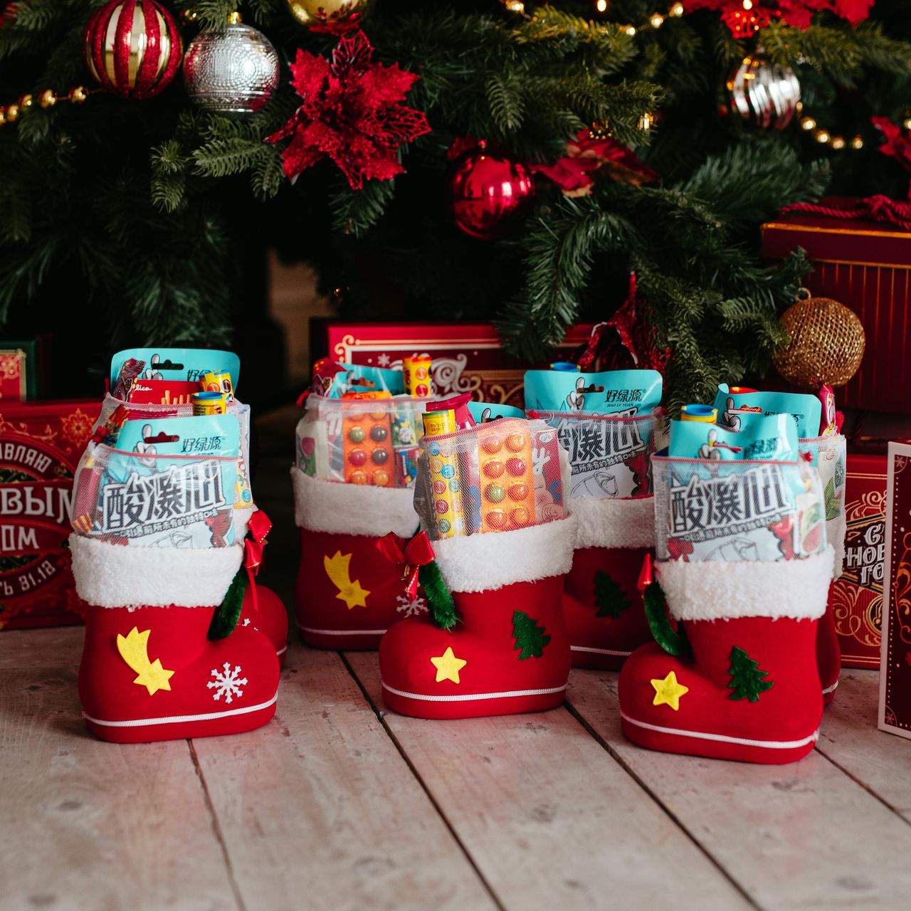 Хотя в Японии не принято поздравлять друг друга с Новым годом, при этом считается обязательным правилом делать подарки детям и сотрудникам компании. Самым популярным подарком в преддверии праздника является набор еды: снеки, сладости и прочее. Перед Новым годом в каждом супермаркете и минимаркете Японии продаются новогодние наборы сладостей в сапожке. На самом деле, это очень напоминают нашу русскую традицию дарить друг другу "кулек" со сладостями и мандаринкой. В этом году мы хотим познакомить вас с японским вариантом "Новогоднего кулечка".