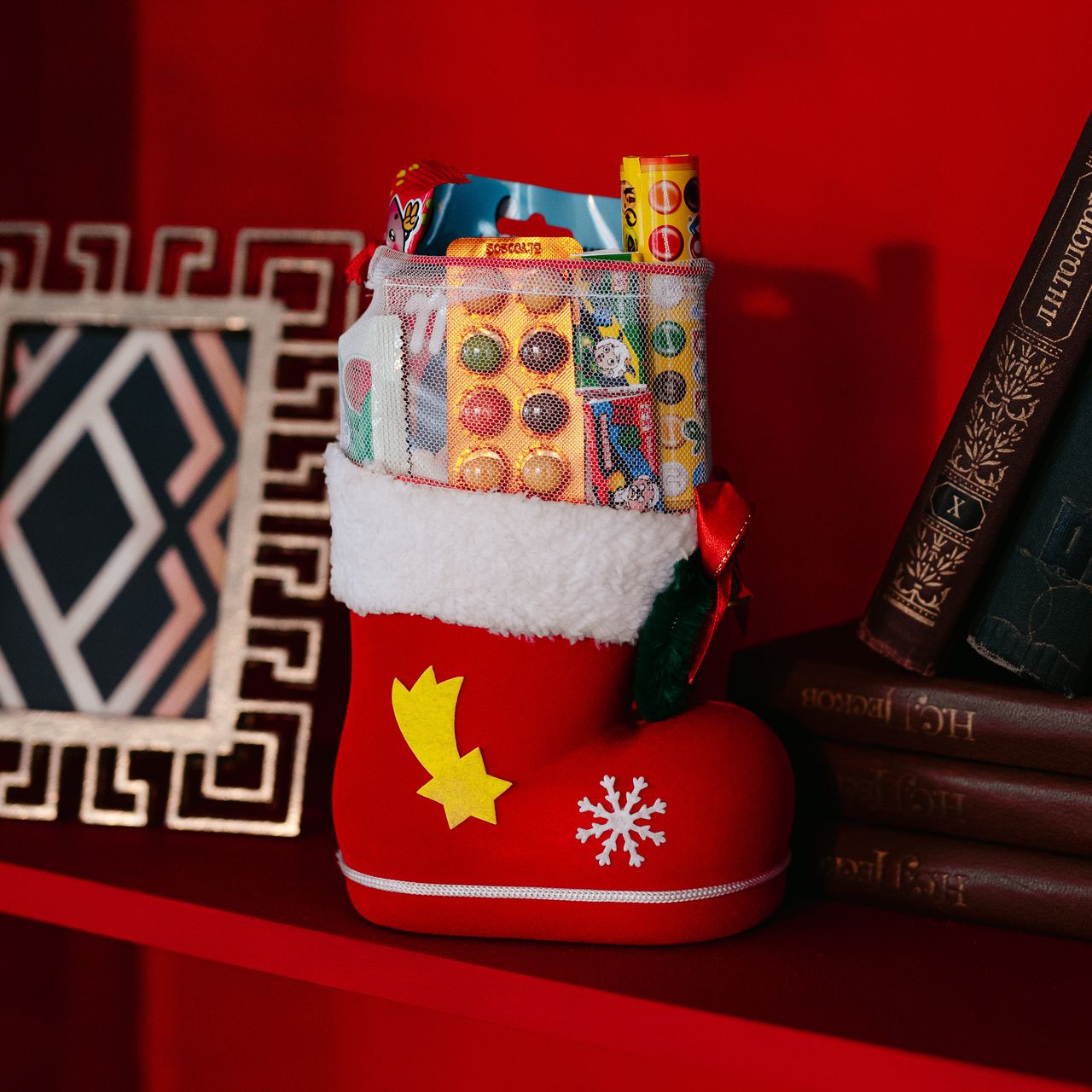 Необычный набор новогодних сладостей в сапожке прямо как в Японии наполнен такими же необычными сладостями! В набор входит 10 различных сладостей из разных точек мира: популярные конфеты от Японского бренда Milky, знаменитые Pocky — бисквитные палочки в глазури, вкуснейшие испанские драже из молочного шоколада, жутко кислые конфеты со вкусом йогурта из Китая, корейская жевательная резинка со вкусом колы от Lotte и другие вкусняхи. Сам сапожок выполнен из пластика, поэтому он достаточно крепкий, но легкий. После того, как все сладости будут съедены, вы сможете использовать его еще много лет. Например, вешать на елку как новогоднее украшение или же наполнять его каждый год разными сладостями.